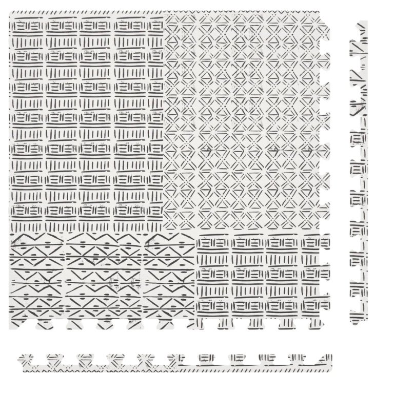 While the shiny surface is what initially caught our (and Ozzie’s) attention, we couldn’t help but notice the boho-inspired play mat he’s hanging out on. We found the House of Noa modular floor covering in a variety of sizes. Plus the graphic pattern is one you’d only expect to find on a handwoven rug—a style statement that gives new parents something to smile about, too.