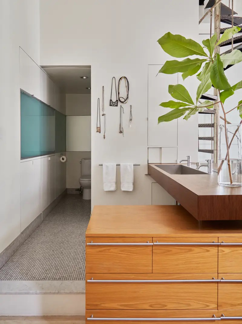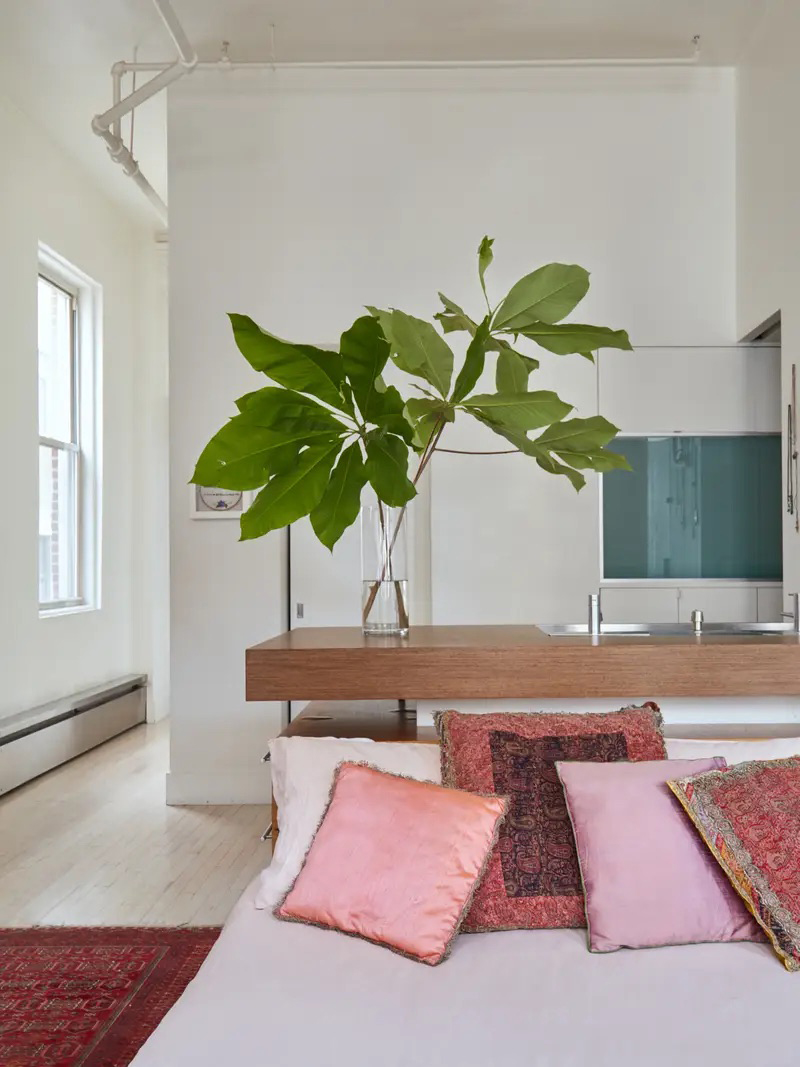 Chef Nasim Alikhani did the most minimalist thing one can do: She didn’t put a wall up between her bedroom and bathroom. Even though her friends joke she’ll never be able to sell the New York City apartment due to the open sinks perched above her bed, she stands by the setup, as she loves to wash her face in fresh air and natural light. Plus being forced to look at your bathroom sink even when you’re not in there would make anyone a tidy person.