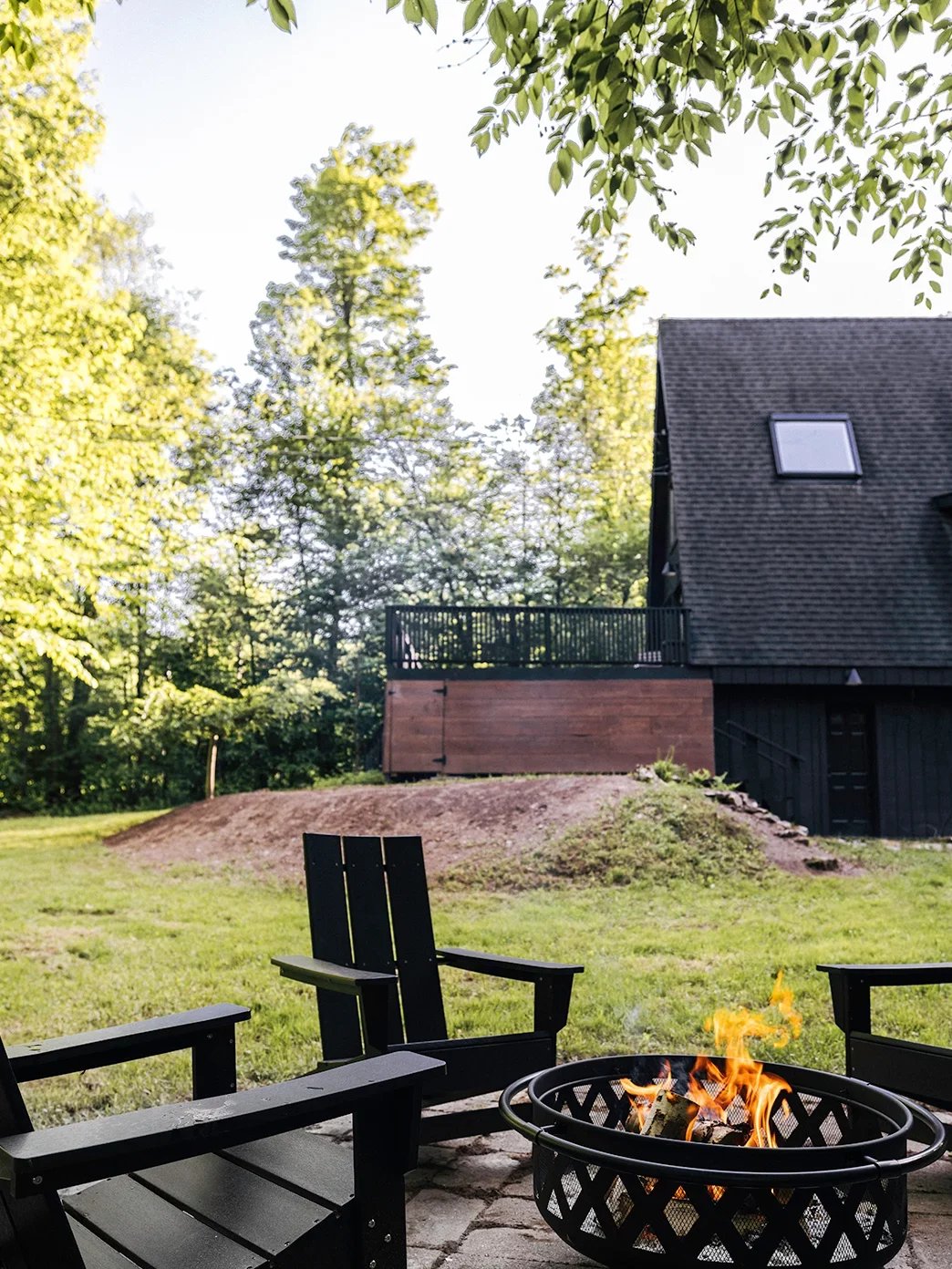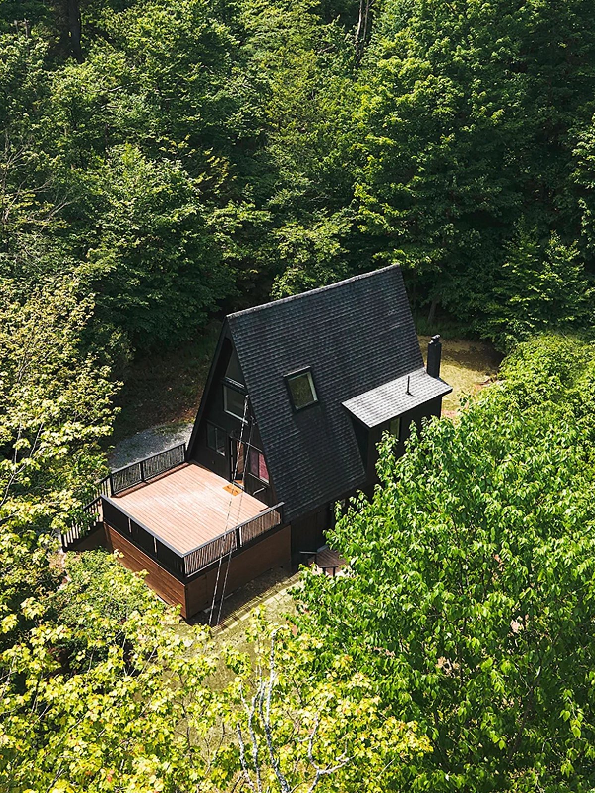 Just like a little black dress, a little black A-frame never goes out of style. This 900-square-foot getaway in upstate New York leans into a modern Scandinavian style with its inky exterior—yin to the bright, (nearly) all-white interior’s yang. Homeowner Caroline McKay, a publicist for design-forward brands, even extended the exterior’s monochromatic color scheme to the firepit’s Adirondack chairs, which beg for a s’mores-making session.