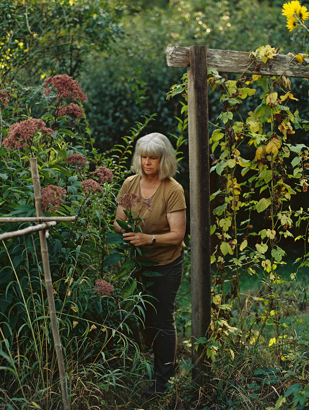 We chose to shoot it in fall because the autumn Oregon garden really demonstrates this juxtaposition of tough resiliency and decay, with soft beauty and late blooms. There’s nothing quite like filtered October light filtering through a cedar tree and landing gently on Eupatorium purpureum. Then next to this alive and lacey-texture, the brown paper-like afterlife of Cascade hops.