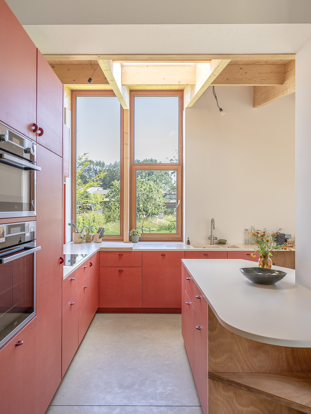 Worried all that opening and closing will damage painted panels? For this space, Marge Architects used Valchromat, an innovative wood fiber that involves bonding the paint color to a resin to make the fronts moisture-resistant and extremely durable. The handles, however, are a blast from the past—they’re sourced from Roctor DC’s collection of reclaimed and salvaged hardware,