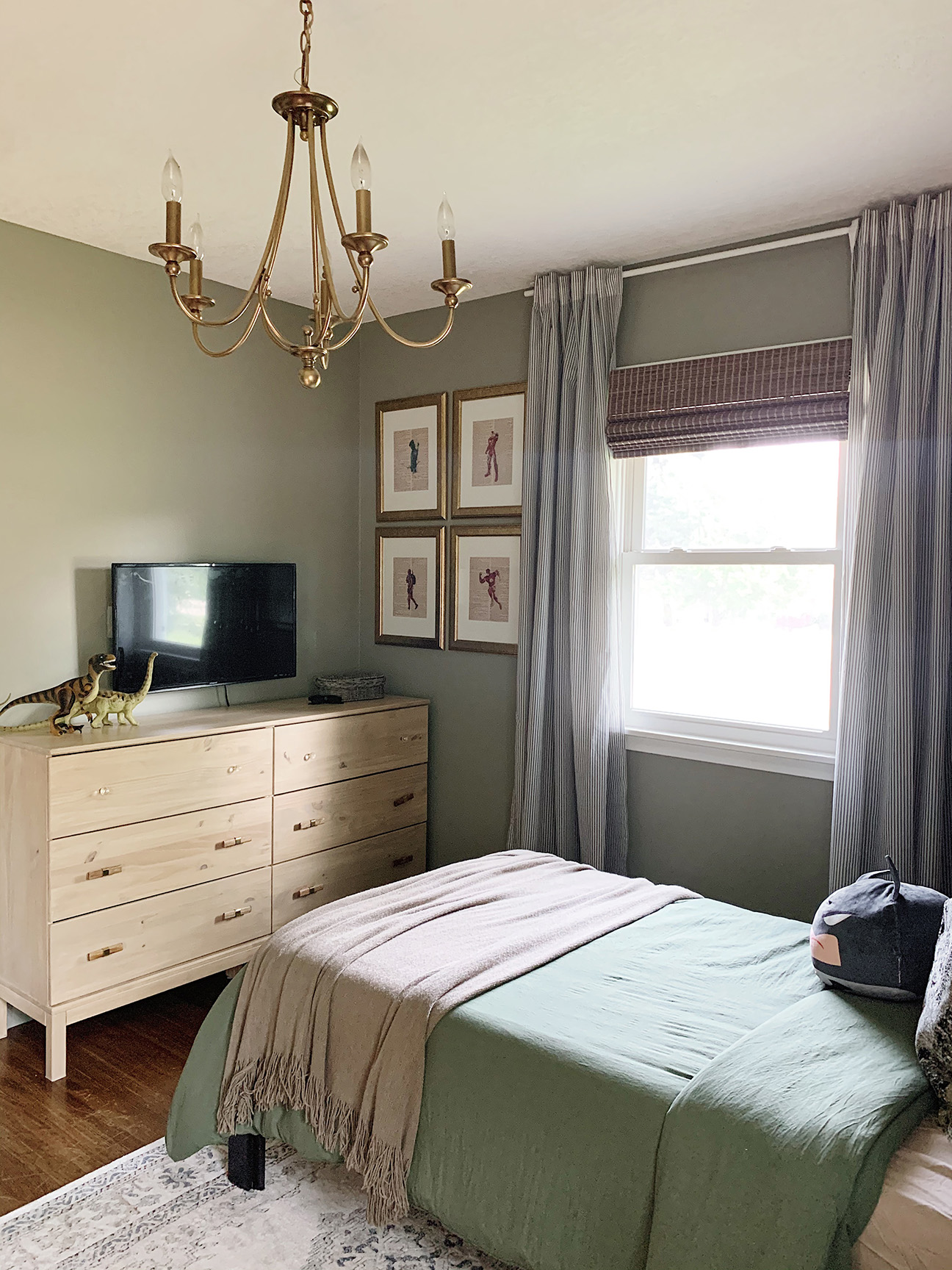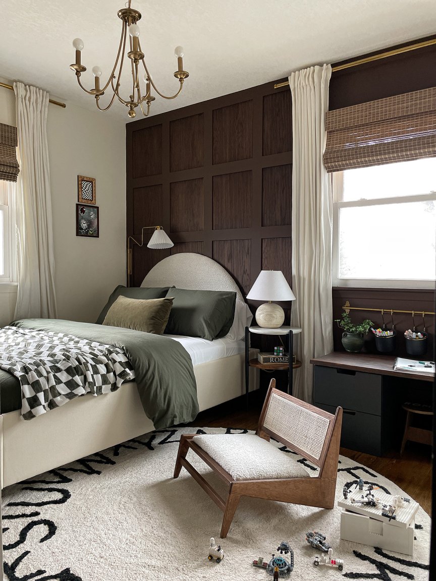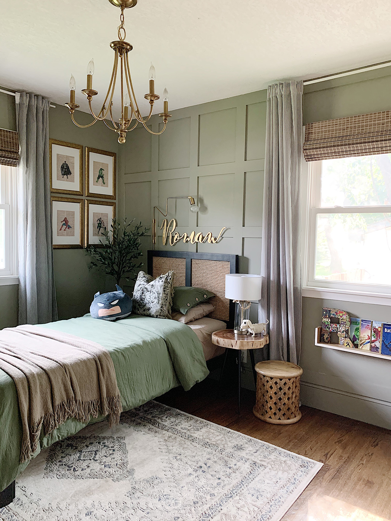 She had decorated 5-year-old son Roman’s bedroom several times before she began considering one more reinvention. “Both my kids have grown up around us designing and DIYing all the time, so they always want updates to their own rooms as our house changes,” she says. When Roman kept falling out of his twin bed in his sleep, it sparked the couple to give the room another makeover.