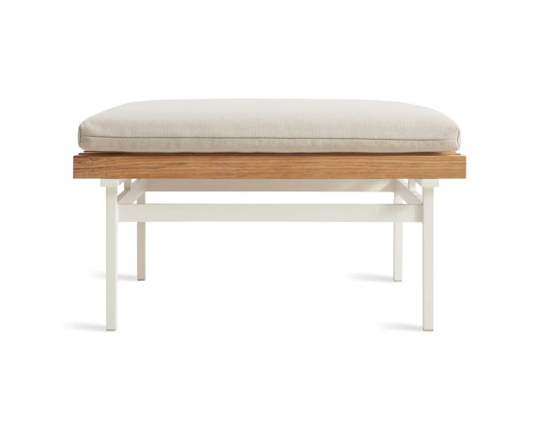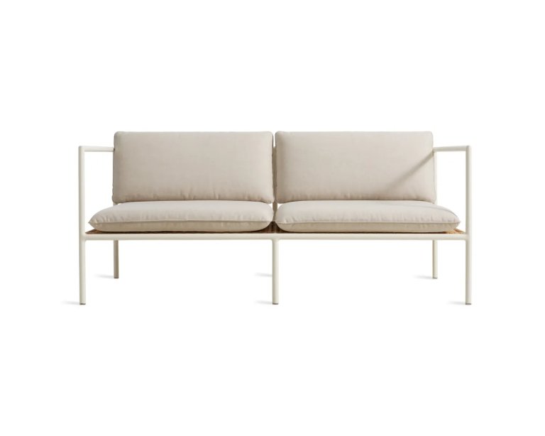 “I love the off-white color of this Blu Dot outdoor sofa. It provides a soft, subtle base for hanging and gathering outside. I envision it positioned next to the Sunbrella Create Haze fabric, offering a low-key graphic effect.”