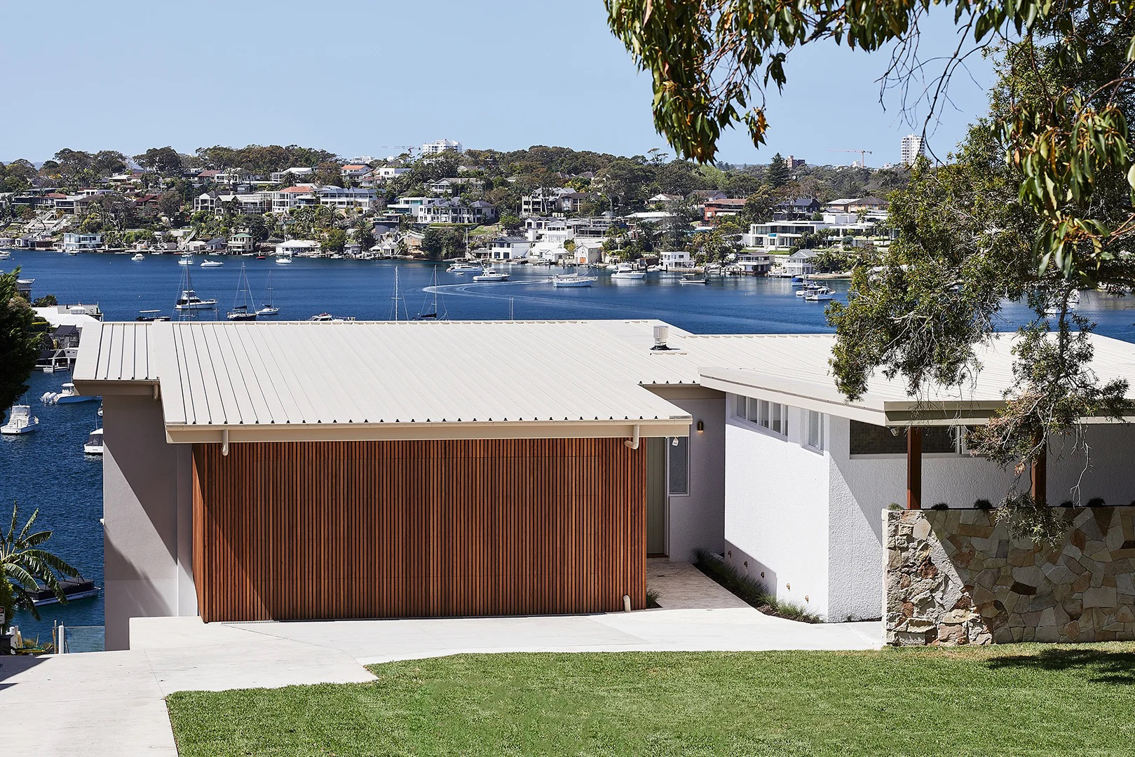 Kerrie-Ann Jones is always surrounded by nature at her Sydney home: The bay is her backyard. But needing to incorporate another organic element, the interior stylist clad the garage in a local species of wood called Corymbia Maculata, more commonly known as spotted gum.