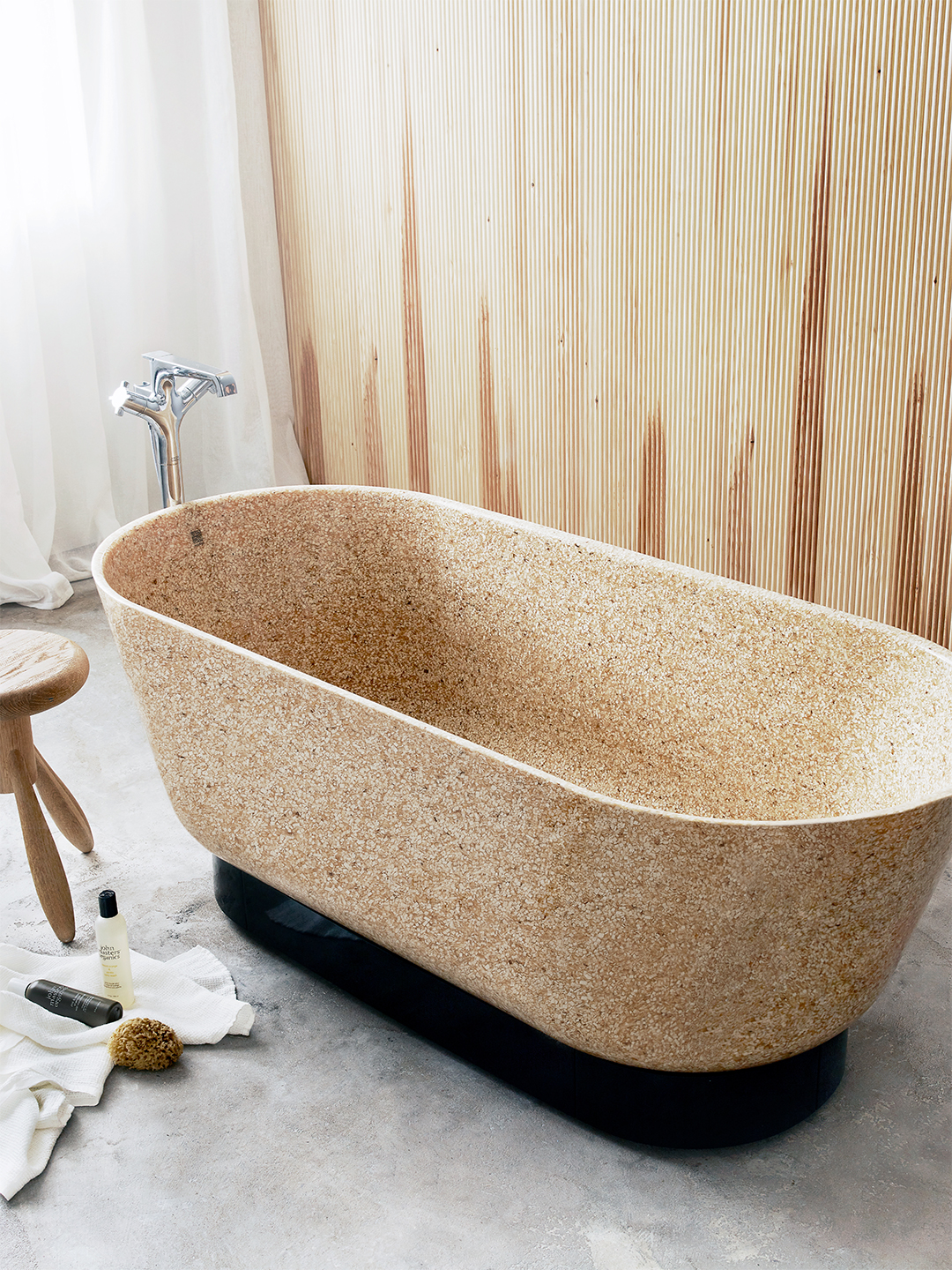 Before you start picturing a rustic cabin bathroom decked out in pine, hear us out. On first glance, you might mistake the material for terrazzo. Because Woodio’s sleek options are actually made of recycled wood chips set in a resin base, it gives the final product a sort of speckled look. The composite wood product is completely waterproof, and the brand has high hopes it will fully replace ceramic and stone materials, which have a large carbon footprint, in the future.