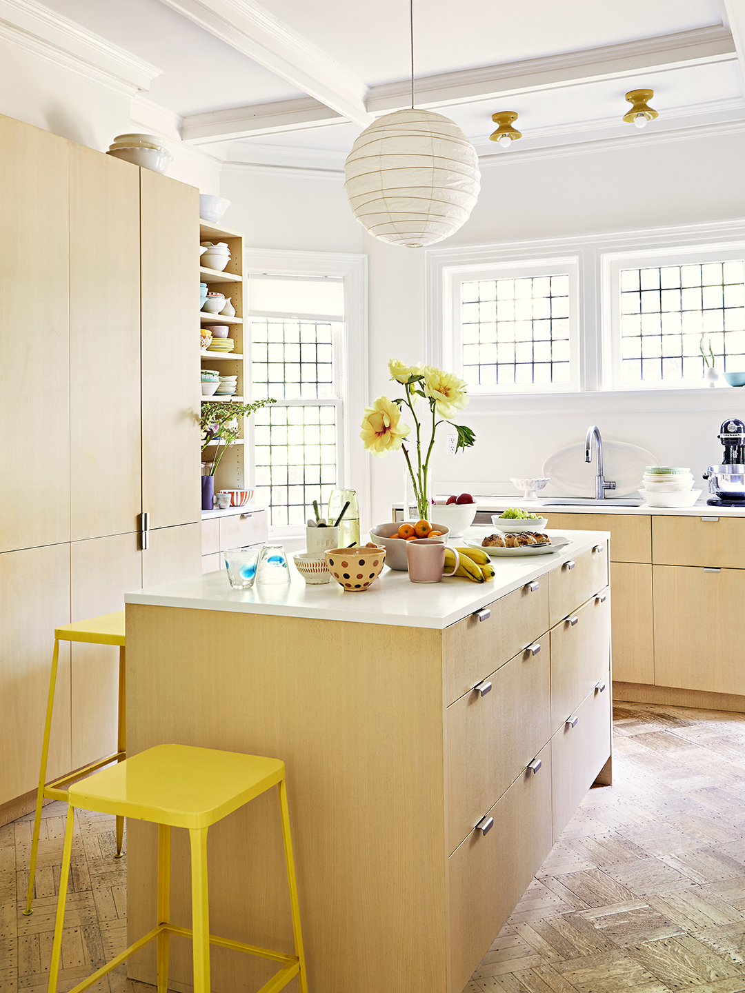 The first time Agnethe Glatved, a freelance photo creative director, and her photographer husband Matthew Septimus, toured their Ditmas Park, New York, home in 2014, Glatved was positive it wasn’t the house for them. The walls were painted murky shades of pink and pale green, the kitchen was shrouded in fluorescent lighting, and there was blue carpeting everywhere. “I was like, ‘Definitely not. This is not us,’” Glatved recalls. So, they kept on with their house hunt, but all along she had a gut feeling that she needed to go back to the circa-1910 property for a second look. This time, Glatved did something she hadn’t during their first visit: she opened all of the curtains. “I was like, Oh my God, there’s a whole bank of windows! Once I realized that was there, I could see the room being filled with light,” she shares.