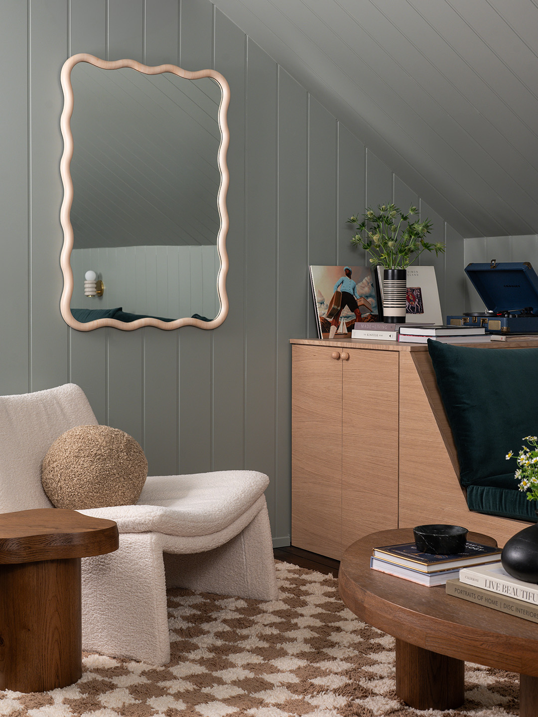 For Kessler, the only route was to go custom. “Walking up to the attic and seeing how long and narrow it was, it doesn’t really lend itself to traditional furniture. I was like, we’ve got to go long with this,” she says. Ahead, she shares how they constructed the ultimate hangout space.