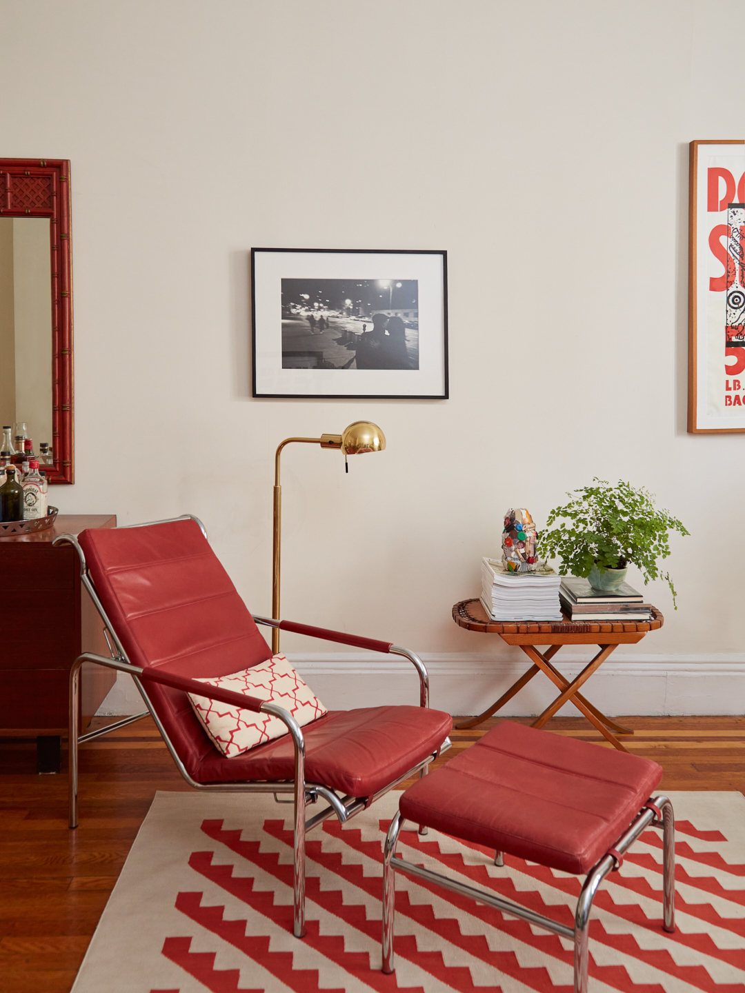 Next, I persuaded Brooklyn-based interior designer Danielle Colding to stop by after drop-off at her kids’ school. While sipping an espresso, I asked Colding, a classically trained decorator, what she would do. She discussed various projects she worked on with her former employer and mentor, Keith Irvine. Colding flipped through various paint decks and to my surprise mentioned swatches with hints of cobalt and orange as options. “I love the pops of orangey reds. I’d like to keep that alive,” she said, looking around the room at my existing decor before earmarking Benjamin Moore’s Pink Damask, then selecting White Blush to cover the walls.