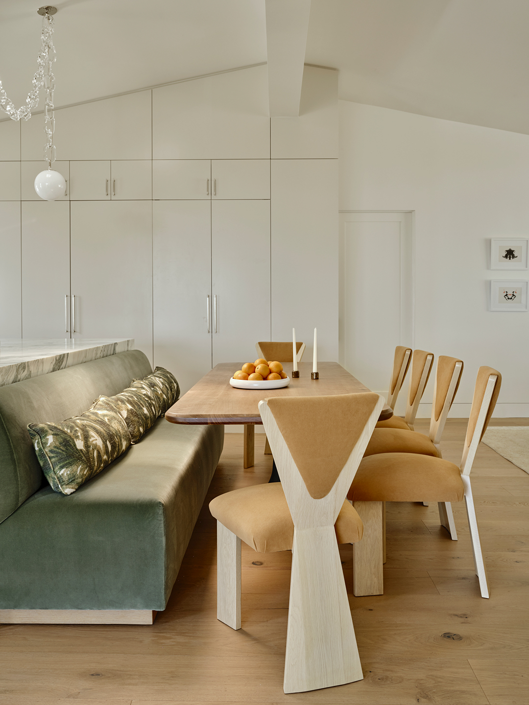 Lameiras: This house wasn’t laid out to have a proper dining room (something our clients really wanted for hosting over the holidays). Instead we placed bench seating along the island. It isn’t built into the structure, so when they do have large parties, they can pull it away from the kitchen, allowing the areas to function as two separate spaces.