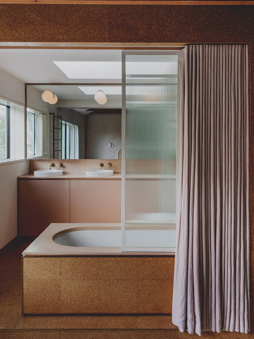 We often see cork in a honey hue, but the material actually has color range. For this London home’s kitchen addition, Nimtim Architects clad the walls in a chocolate-toned cork so that the fresh material would complement the Victorian’s original brickwork. They even used it along the exterior, where it will achieve a silvery gray shade over time.
