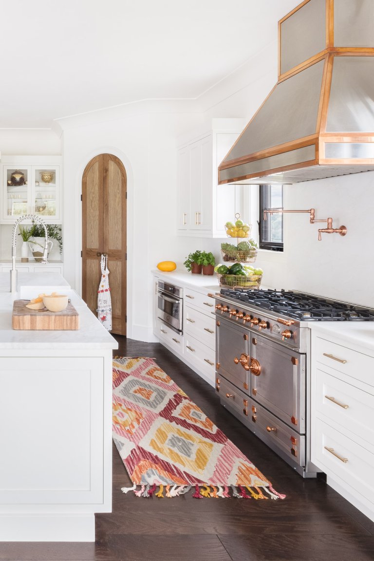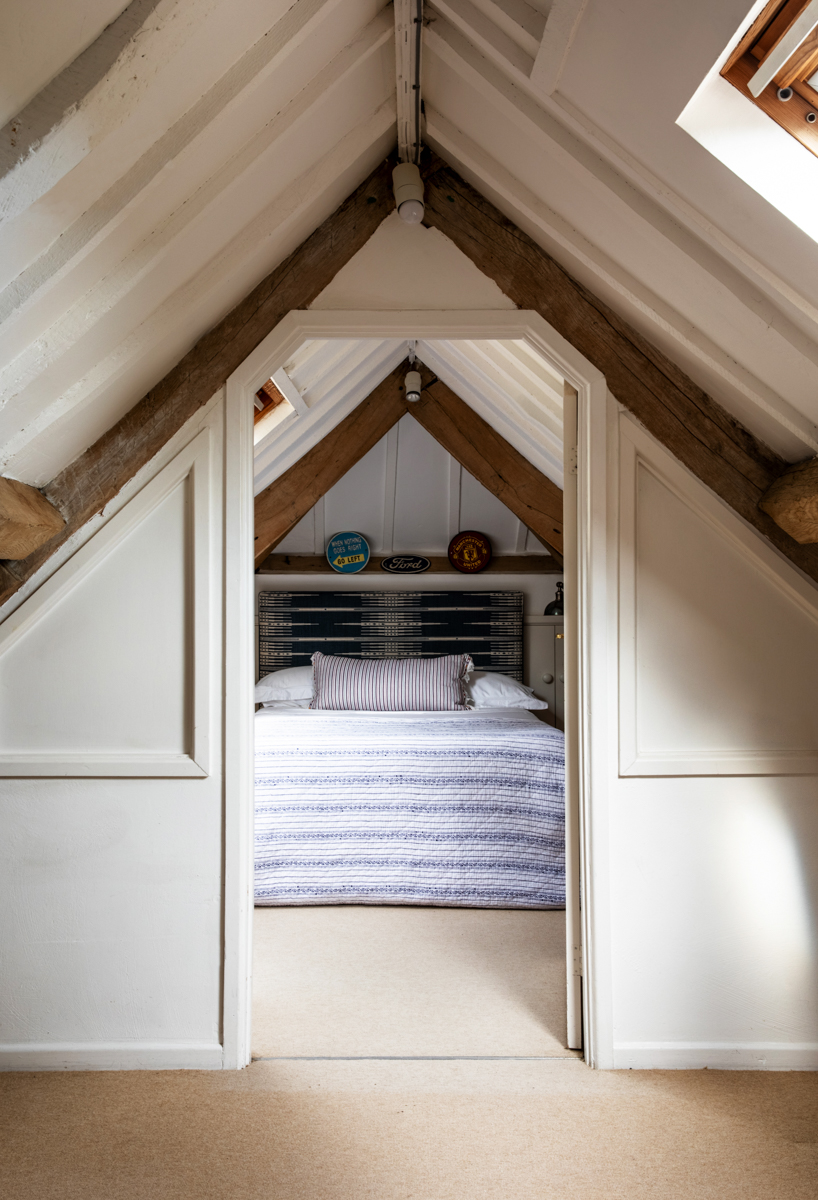 Up in the eaves, the other brother’s affection for purples and navy was indulged with a graphic indigo linen bed, now bathed in rays from the nearby skylight. Cunningham has fittingly dubbed the property “the house with a million views.” “Any window you look out of is breathtaking,” she notes. The same can be said for the interior, too.