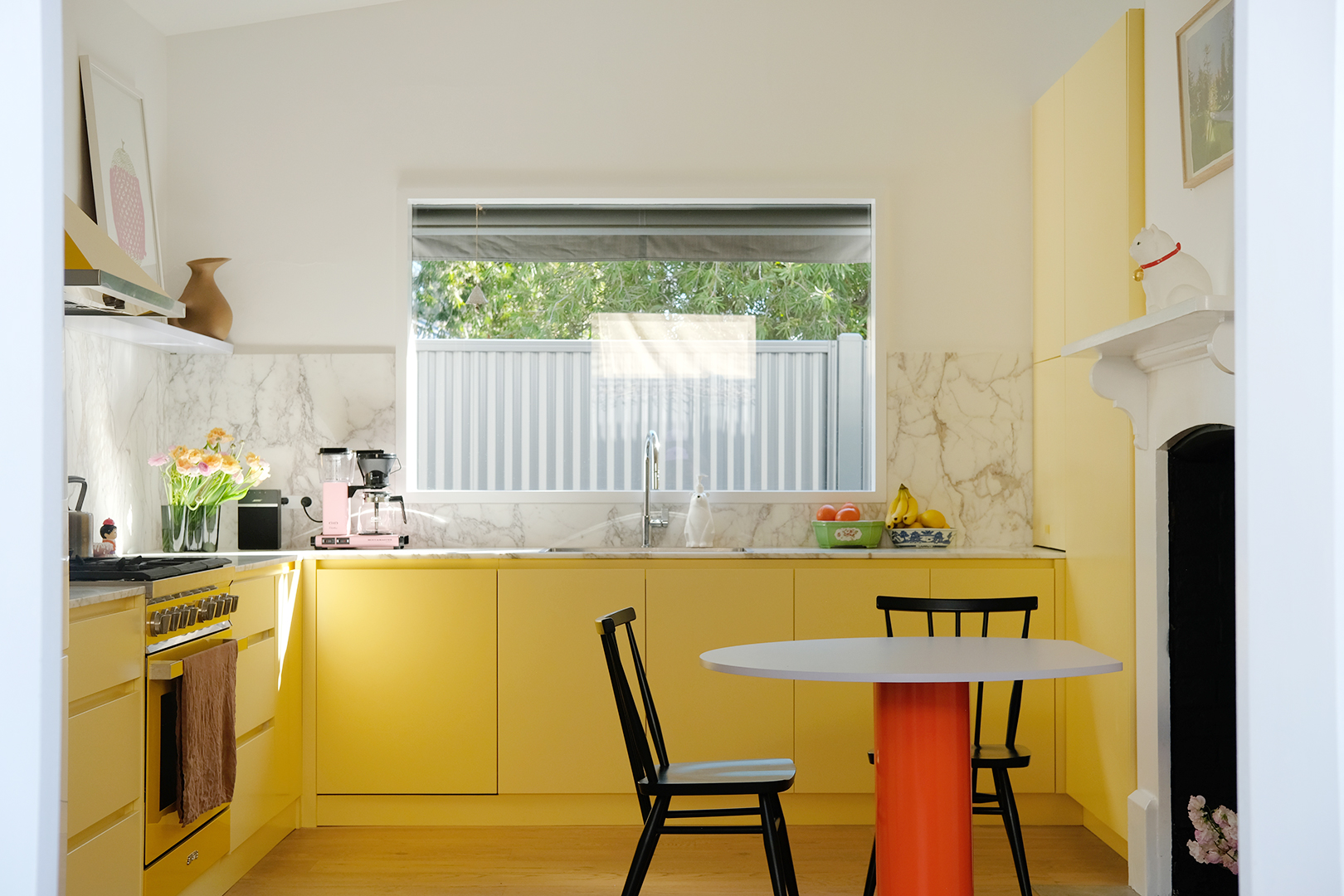 The circa-1910 house, located in the western suburbs of Adelaide, wasn’t always this cheerful. The structure was originally built to host workers from the nearby rail yards and port; while many of the homes around it are constructed out of ritzier sand or bluestone, this two-bedroom house is built from pressed tin and corrugated iron.