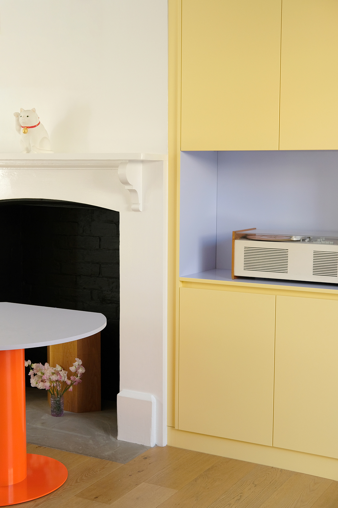 “We actually decided on this aspect very early on and had almost forgotten about it when the install came around,” recalls Aiston. Luckily paint is an easy last-minute DIY. A light purple nook now punctuates the pair’s treasured Dieter Rams Braun SK-61 record player, which they bought to celebrate their 10th wedding anniversary a few years ago. Then there’s a delightful hit of pink in the form of their much-loved Moccamaster. “We use it every day to brew a big pot of tea that helps keep us perky during the morning slump,” she adds.