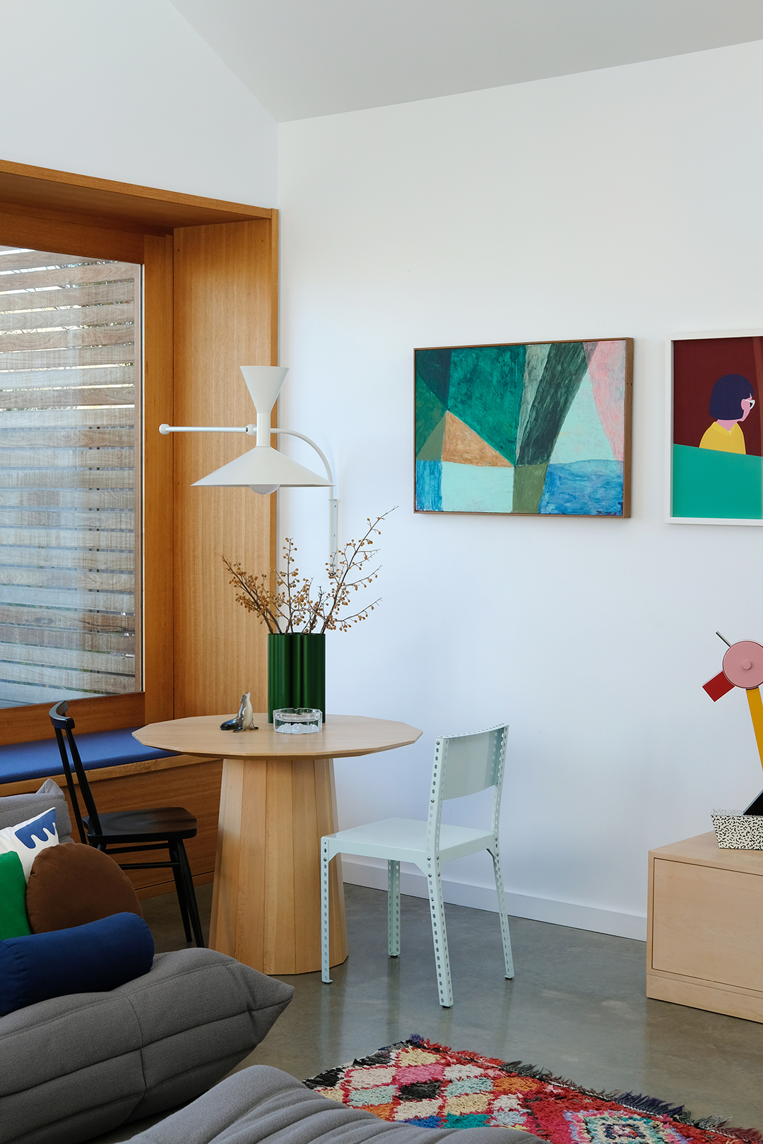 Once their mugs are full, To and Aiston carry them over to their studio—conveniently located in a separate structure at the back of their garden. “So there is just enough disconnect to make it feel like we are going off to work,” says To. Currently on their to-do list: preparing for the June opening of a kids-focused exhibition at the National Gallery of Victoria. Unsurprisingly, one of the activities at the show involves getting children to create funny faces from sparkly shapes in a rainbow of colors.