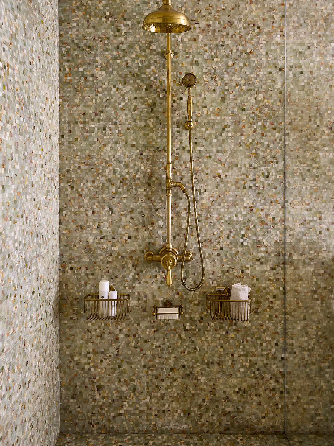 When I saw designer Eliza Silva’s Nantucket bathroom, I gasped. The clay tub! The fluted vanity! The mosaic tile! Wait, mosaic tile? I had to do a double take, because this looked nothing like the beige-brown strips I’m used to seeing in chain-hotel rooms. Covering all four walls and the floor, the 12-by-12-inch sheets of green onyx make the whole space glisten. Ever since I chatted with Silva about her space, I started noticing other fresh applications, like a dark green shower designed by Sam Sacks and Home Union’s combo of creamy white 2x2s and 1x1s. —Lydia Geisel, home editor