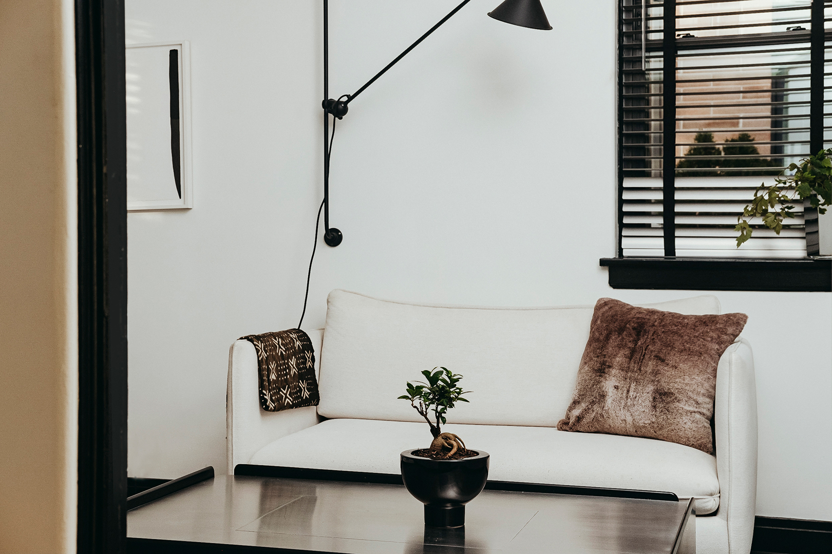 With the decor, Aguilar leaned into a grayscale palette. “I put objects with objects to tell stories for a living,” he says. “When I’m at home, I want to be able to just wander in my mind, as opposed to thinking about how red or whatever color evokes a connection to something out in the world.” Boutique and box-brand pieces are mixed with vintage finds from local dealers like Dial M for Modern, CircaModern, and Scout.