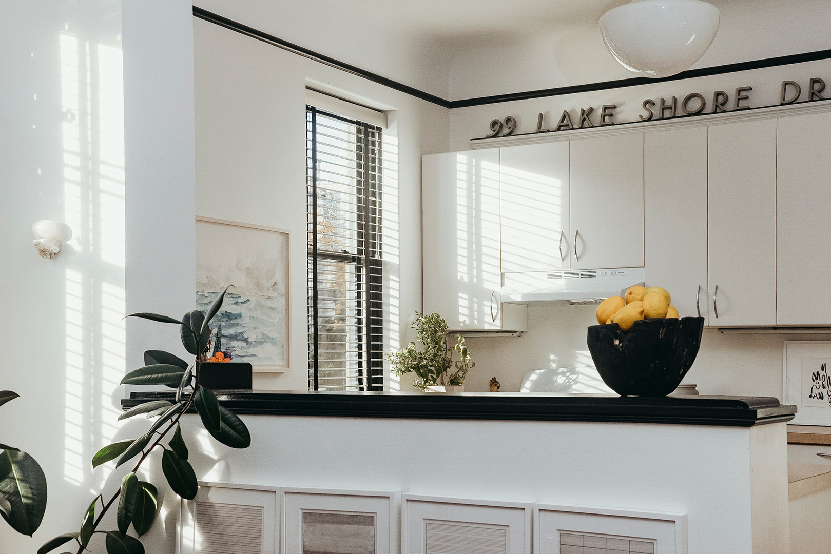As for the “99 Lakeshore Drive” lettering above the kitchen cabinets: “That was just there, so I left it. I like anonymous sculptures, things with no history or signature to them,” he says. The ceramic dog in the kitchen was gifted to him by his father 15 years ago. “It’s actually a fountain, with holes in its mouth and private parts,” he says. “When I saw it, I was like: ‘This is the best thing you’ve ever given me.’”
