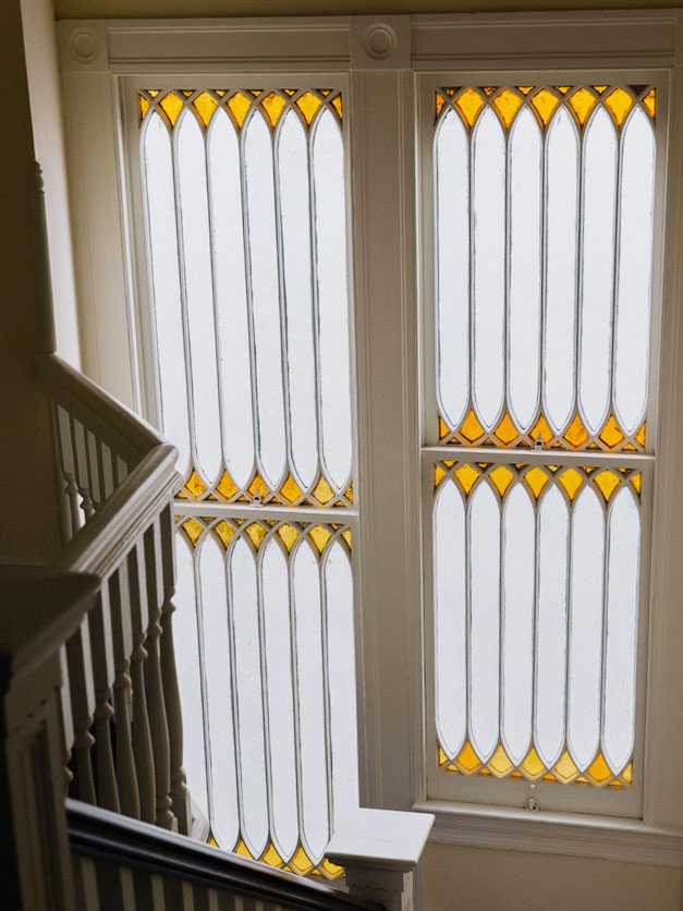 After scraping the paint off every single original window in the house (a breeze is just as vital as central AC), Beryl finally got to polish those golden stained-glass diamonds in the stairwell and the pebbled transom windows above the doorways. Sure, the two-year process may have been painstaking, but for Beryl, it just might be her favorite assignment yet. “There are so many textures and layers because it’s a living, breathing home,” she says. “The last thing the family wanted was to smother it.”