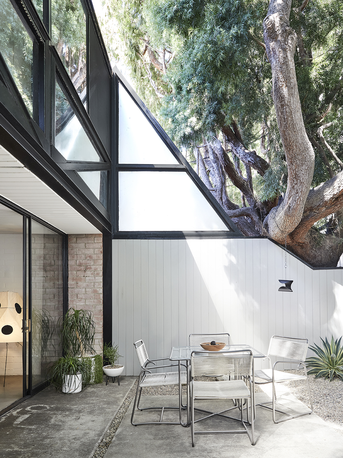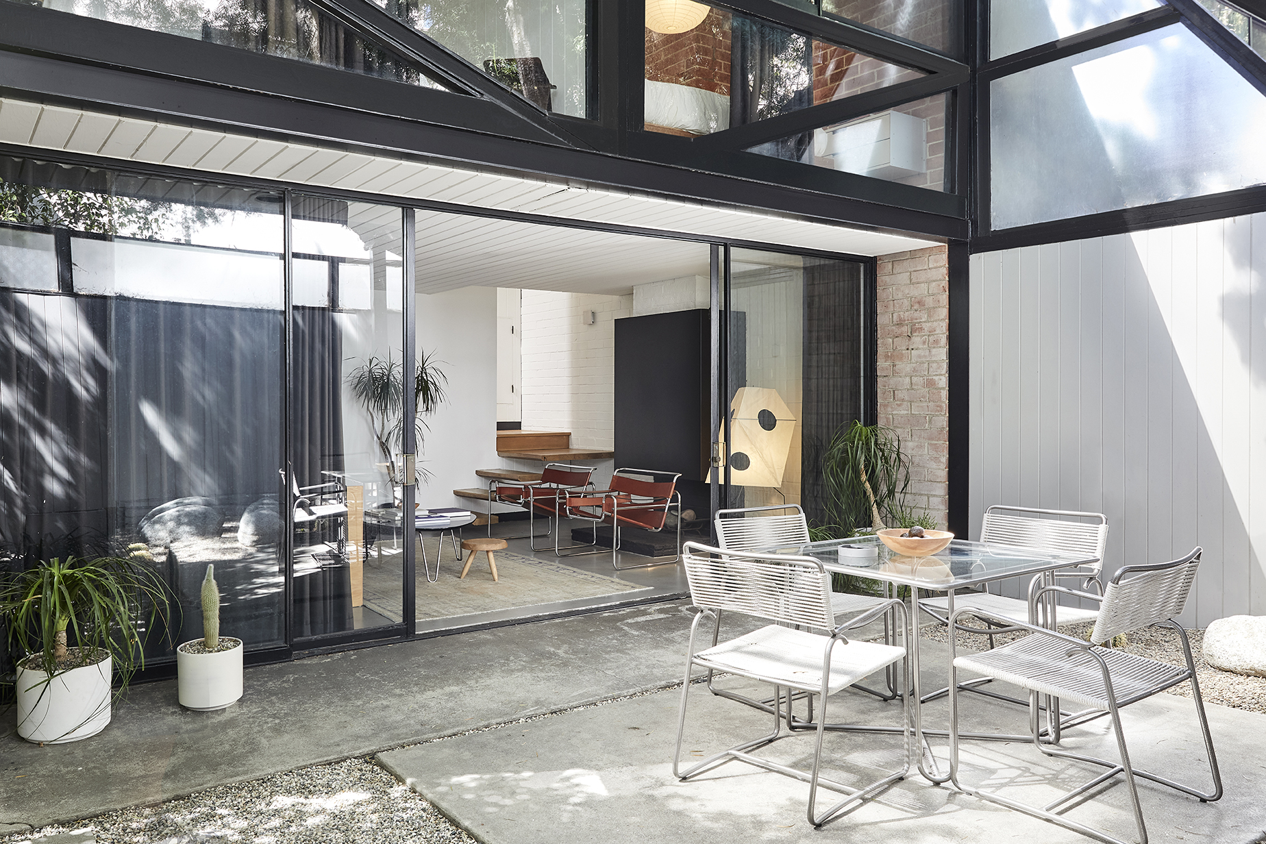 The one thing Starkweather did update was the outdoor space: “It was bug central,” she says. With the help of friends, she ripped up the unruly plants to start from scratch. Envisioning a serene, Noguchi-style garden, she opted for native cacti, Home Depot gravel, and a few 500-pound boulders from a nearby quarry. Just like inside, Starkweather let the bones of the building shine. We bet Ellwood would approve.
