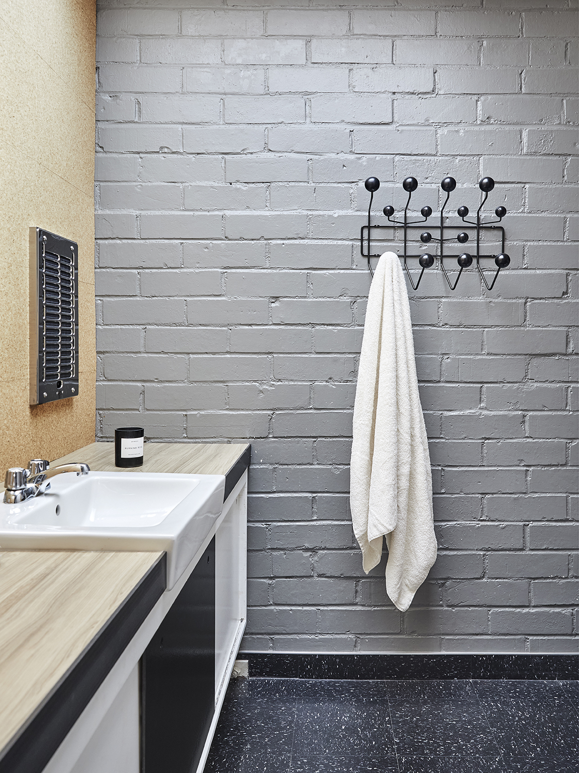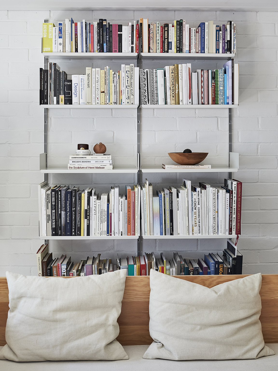 Serendipity struck again on move-in day. Despite no prior knowledge of the unit’s floor plan, Starkweather’s Wassily armchairs and Noguchi lanterns found the perfect home. The apartment was nearly finished by the time the movers departed, save for a sofa, one of the last question marks. For a seat that would fit right in, Starkweather had to go custom. Inspired by Donald Judd’s streamlined plywood creations, she designed a high-backed frame (think: daybed vibes) in the same material.