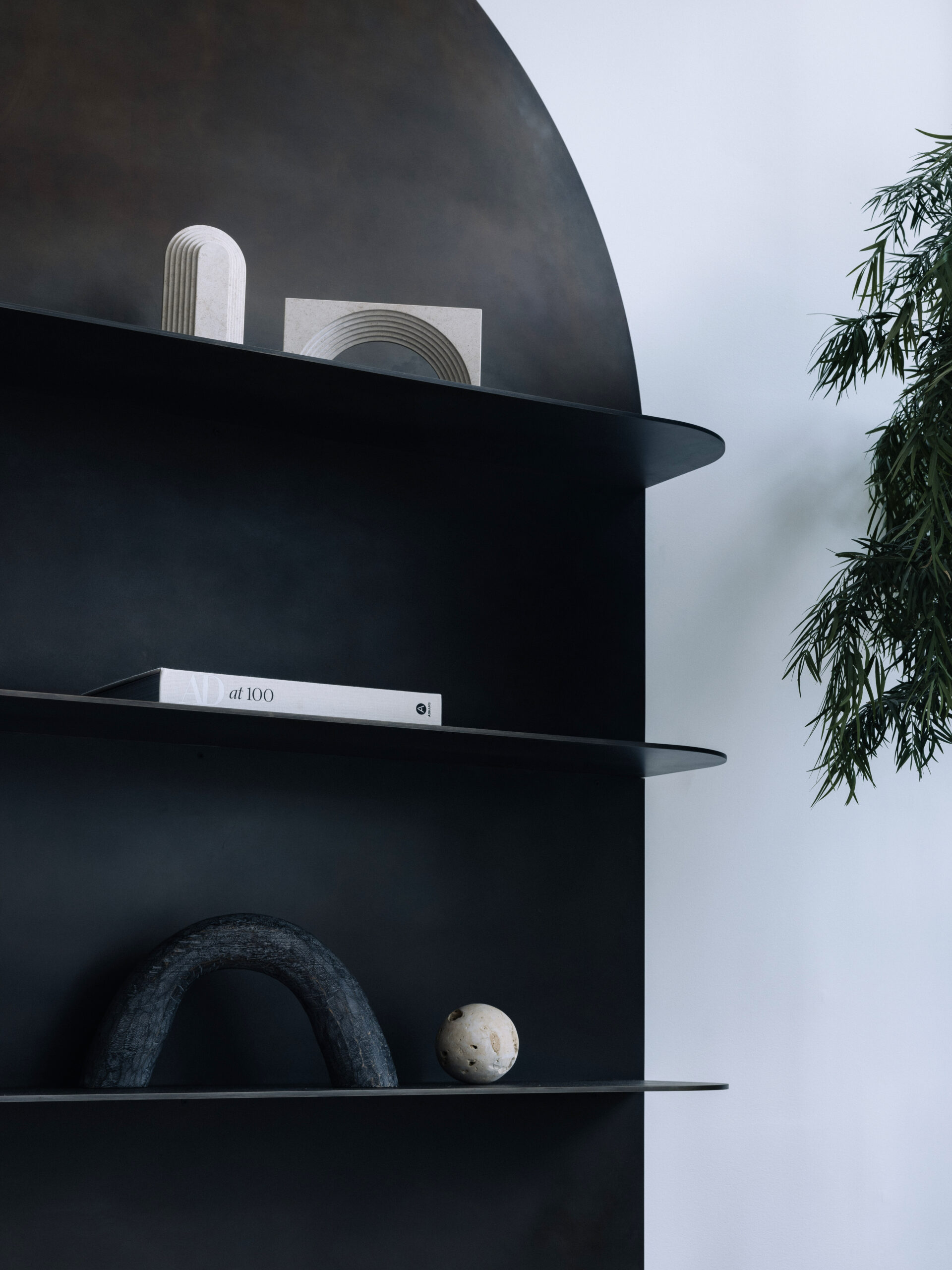 Karabudak’s other requirement, the water feature, turned out to be a labor of love. When they started to price out custom fountains, they were shocked by the numbers, so they decided to make their own. They called in the same metalworker who fabricated the trims on the arches to build a steel trough, which they set inside a tub of terrazzo and surrounded with greenery, and then added two water pumps on either side to create the babbling brook effect Karabudak was going for. “It’s kind of become its own little habitat,” Bozkurt says.