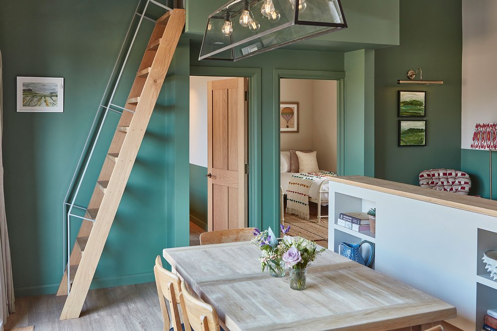 The whole misunderstanding—”to-ing and fro-ing” as Alice puts it—set them back 15 months before even breaking ground. Luckily, a misplaced river was their only setback. With the help of architect Kris Eley, who led the charge on converting the 12 stables into six colorful vacation rentals, the entire timeline ended up taking just eight months.