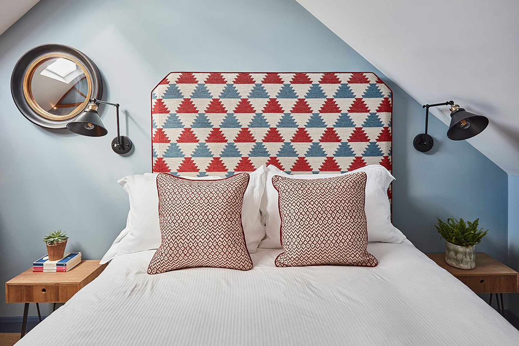 And it does, whether that’s by exposing original brickwork and stone; adding hand-tufted, bespoke headboards; or employing a brave use of paint combinations and classic English cottage patterns. But Ashman points out that the cozy, comforting feel they were after should be attributed to the light choices more so than the furniture.