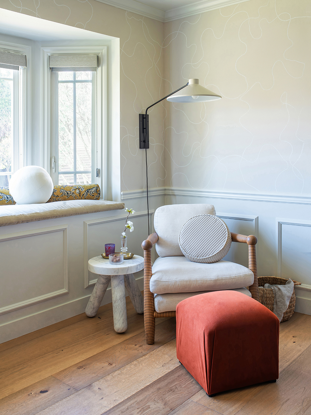 The solution: Dub the zone the “entertainment room.” Lee-Lim brought it to life by putting a family piano in one corner and a spillproof cushion in the bay window where they had previously displayed framed photographs. “That’s the dream, in my opinion: Saturday morning, sitting there doing a puzzle or reading a book,” says the designer.