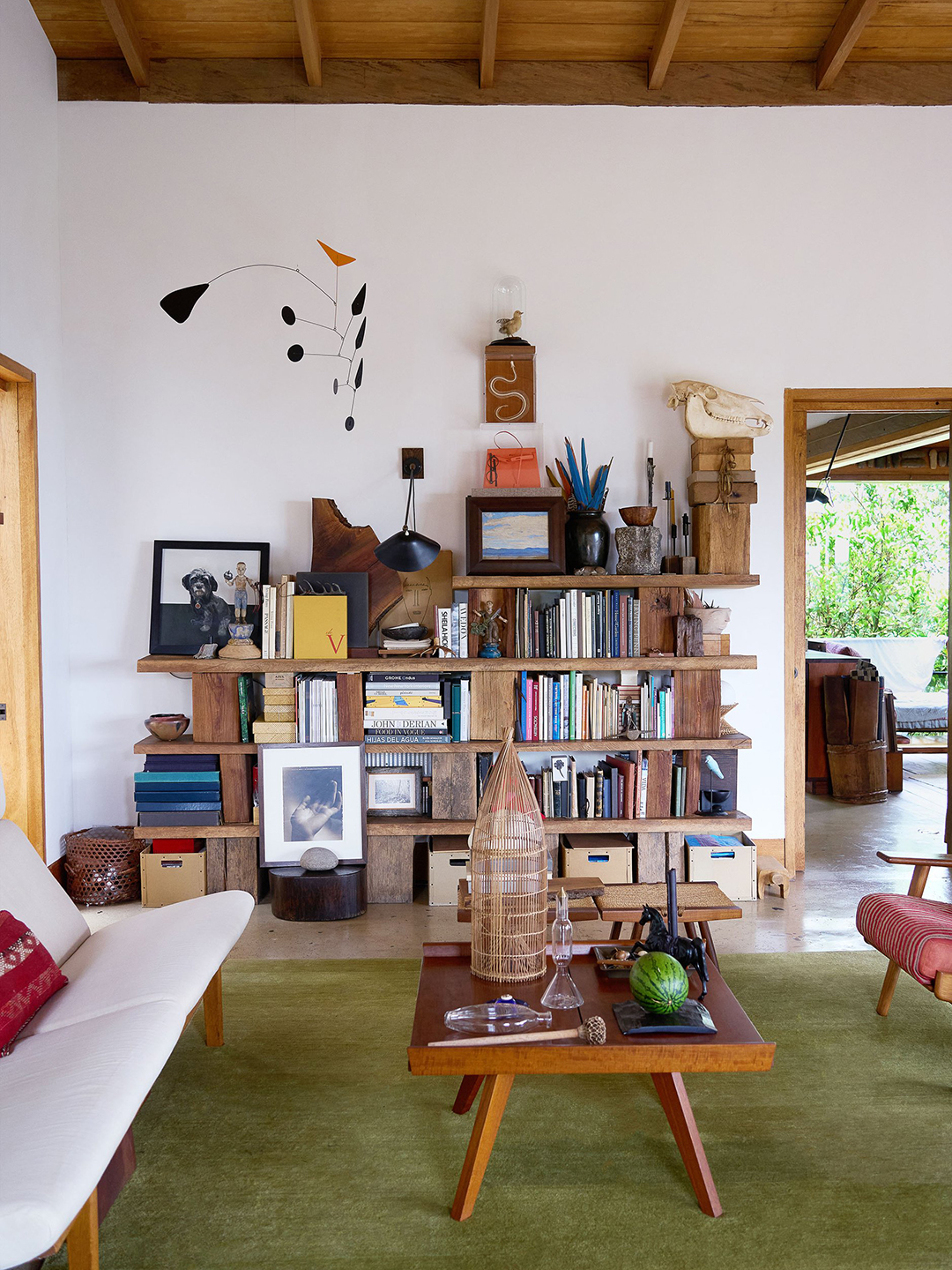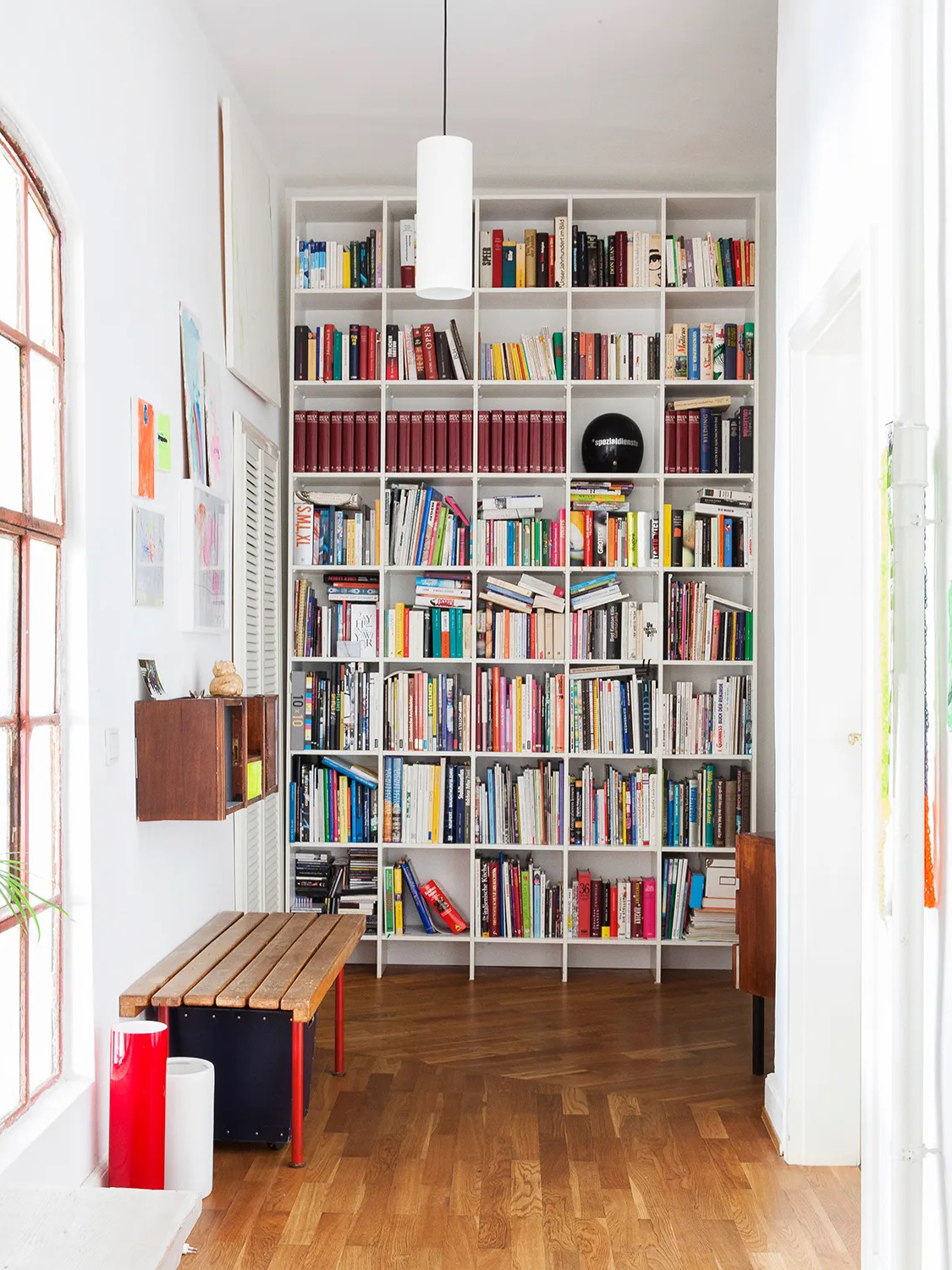 Photographer and stylist Anita Calero turned the bookshelves in her Cali, Colombia, home into art pieces in their own right. The wood planks are a touch asymmetrical, which balances out the heavy load each surface carries. We love this method because it’s easy to switch up the scene whenever you’re craving something different.