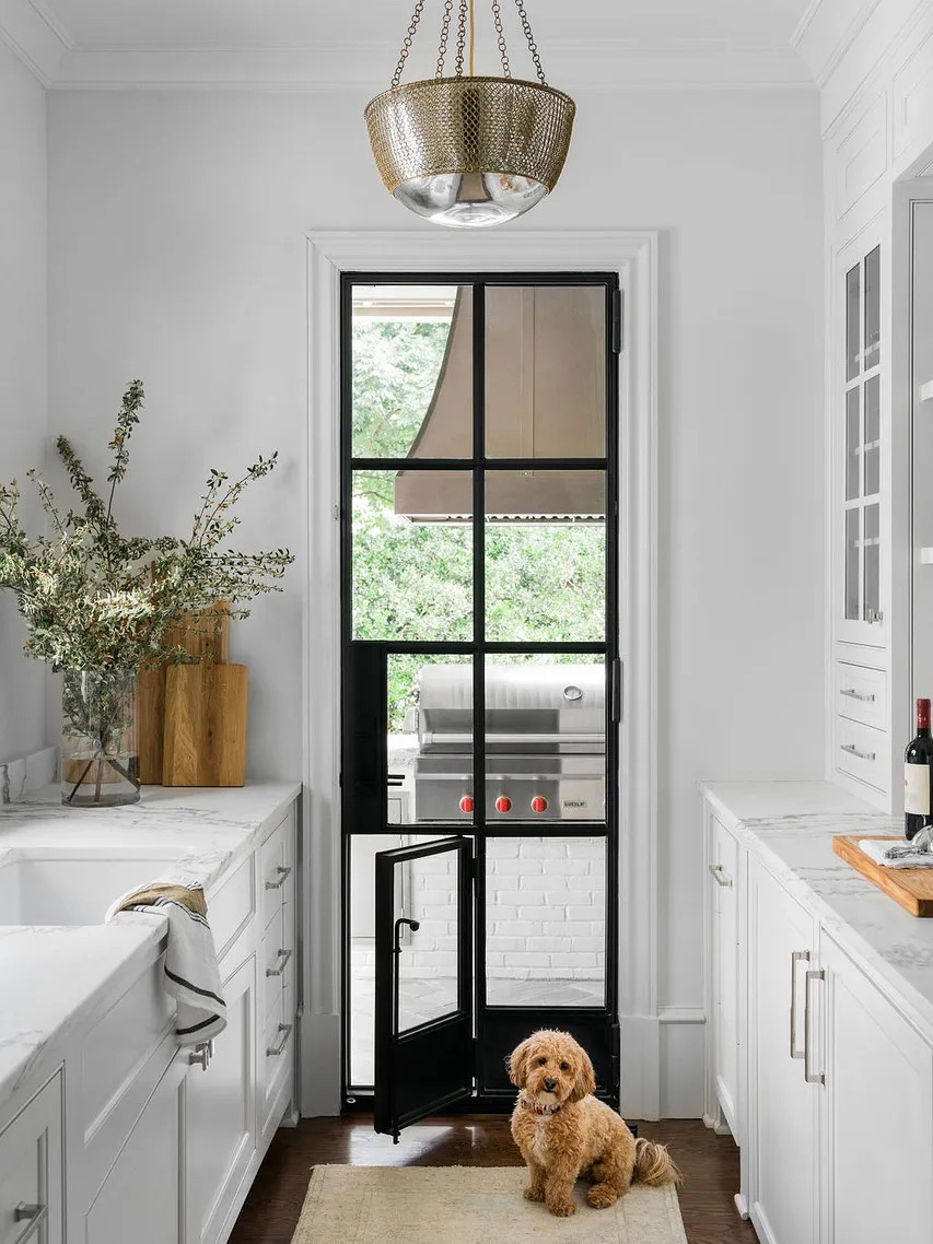In fact, a survey of 1,165 pet owners on Houzz found that nearly one in ten participants had added a pet-specific built-in feature to their reno. The projects at the top of the list? 39 percent of respondents said they were adding feeding stations, while 34 percent were creating outdoor enclosures, like a catio. It’s a trend we’ve noticed recently, from a custom under-the-counter dog crate in this Los Angeles home to the most beautiful hand-welded steel doggy door in an Atlanta-based designer’s project.