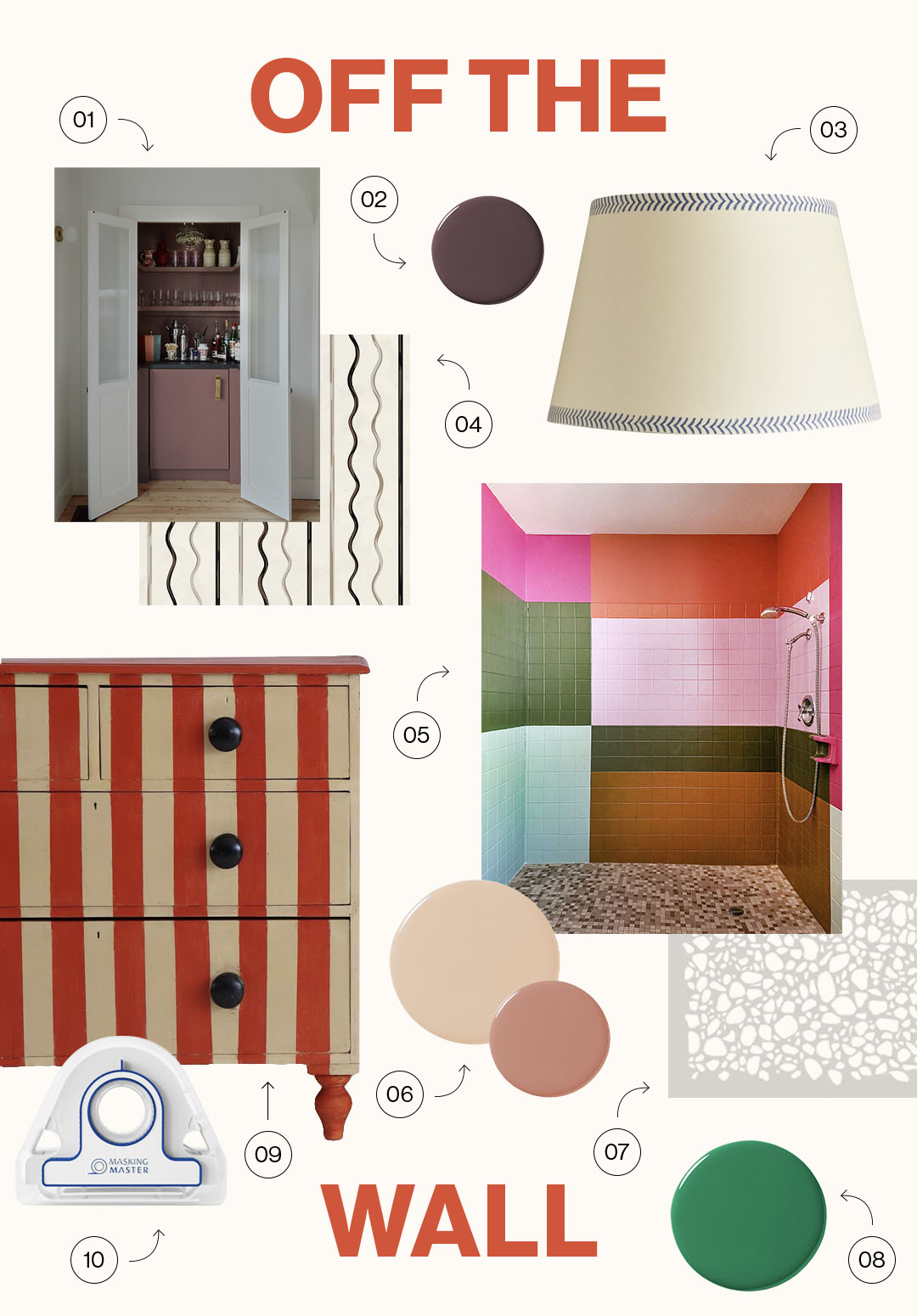 - How does one create perfect stripes on said piece of furniture? With lots of blue masking tape and this genius applicator, which I’d desperately need to achieve straight lines.
