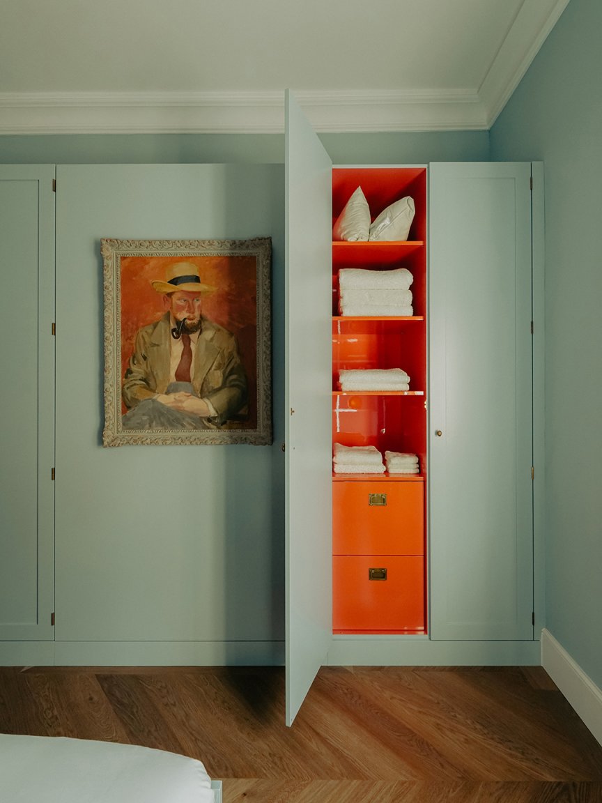 What I’m loving right now: Pops of color within closets or cabinets. I remember noticing this on Atelier Karasinski’s Instagram a few years ago, and the image (below left) stuck with me.