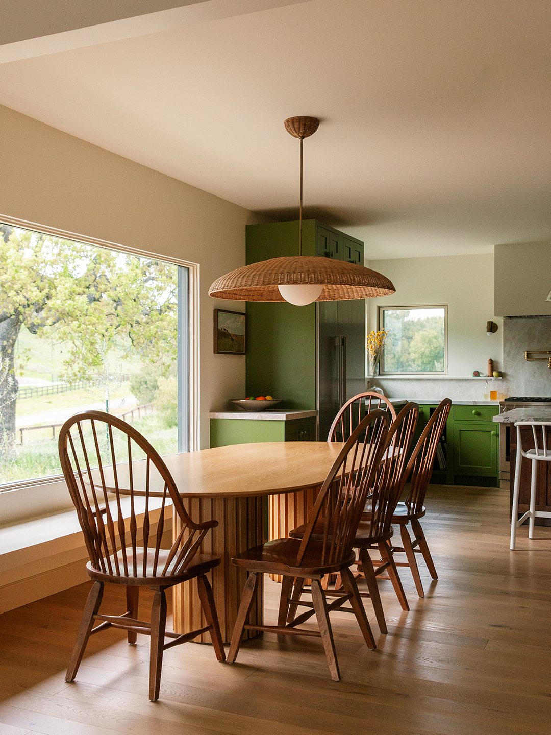 After receiving bids from architects that were five times their budget, the couple decided to act as their own project managers. Tripper oversaw the detailed plans and elevations they’d hand off to their contractor; Maggie took on the role of interior designer. For three years, as construction progressed, the couple and their two kids holed up in a one-room cabin on the property, but it was during these visits that everyone got to know the land and was inspired by it. “The kids would come back with huge piles of weird grasses and wildflowers and be like, ‘I love this one. I love that one,’” says Maggie. “A robin laid her eggs, and the blue [of the eggs] eventually got pulled [into the house].”