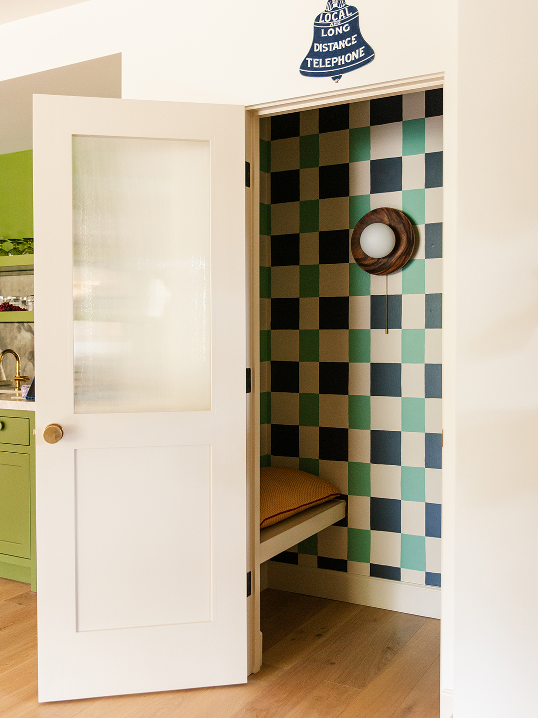 When service is spotty (which it often can be), they can take a call on the landline in the designated phone room near the porch. Olive and Ruby have recently memorized their parents’ numbers, so they’re the ones putting the space to use. “One of us will go to the grocery store, and they’ll call and say, ‘Oh, we’re also out of yogurt,’” says Maggie.