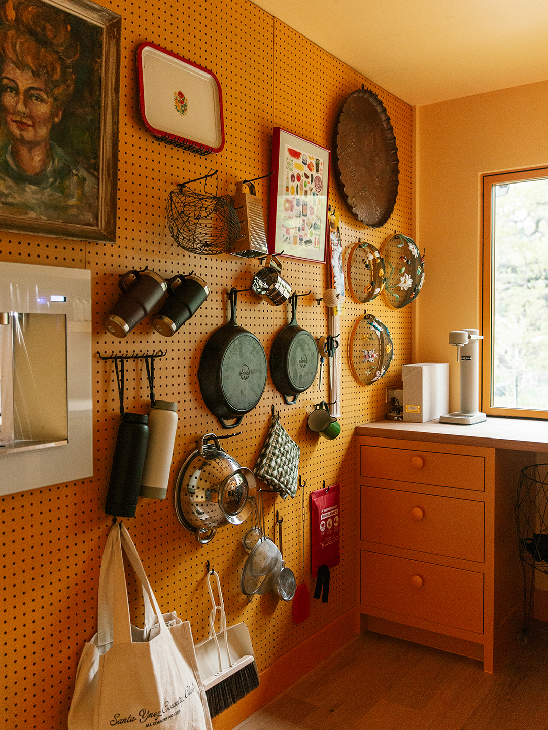 Tripper is also the reason behind the secret portal at the bottom of the slide. In the first few months of construction, she would notice him sneaking off for some heads-down time (he’s a screenwriter). Maggie wanted to find a way for him to feel like part of the action without being bothered in the moment. “I’m like, ‘I’ve taken the day off and it’s such a bummer to watch you work.’ So finally we compromised and created an office with a hidden door,” she shares. The room is totally soundproof: “We can be sliding right outside of it and he can’t hear anything.”