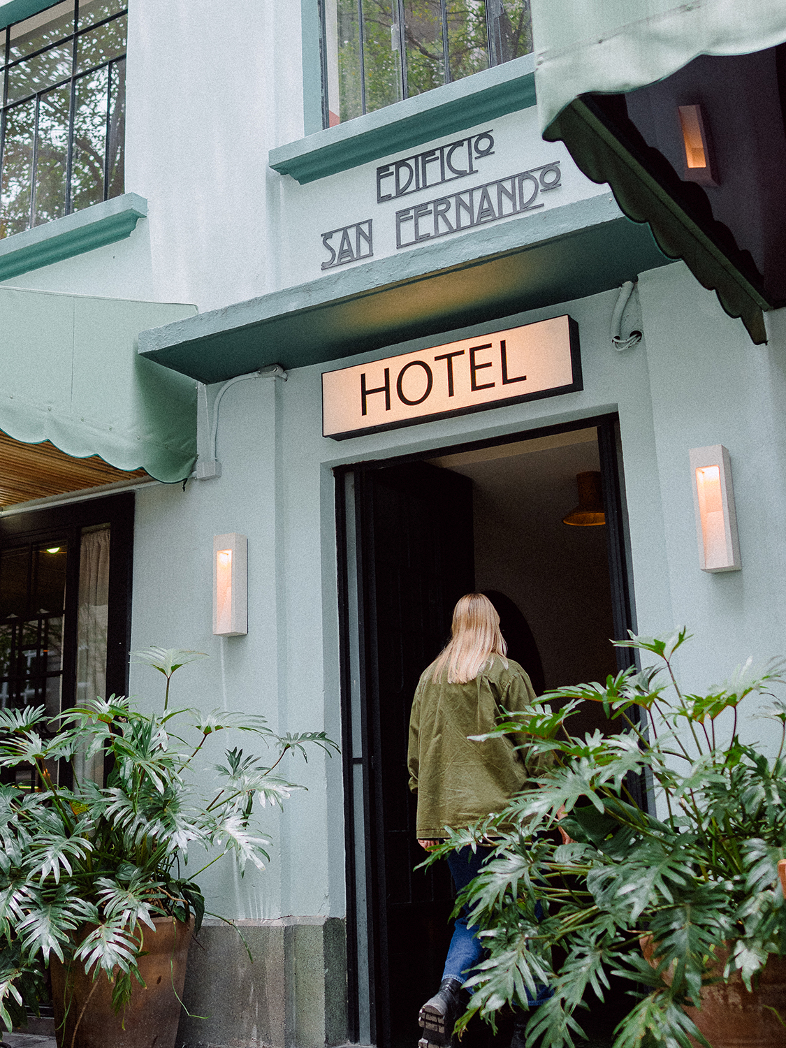 On its exterior, the recently opened Hotel San Fernando in Mexico City’s colorful La Condesa neighborhood boasts a cool mint green—but inside it’s the half-pink walls that lure visitors to book one of the 19 guest rooms in the former apartment building.