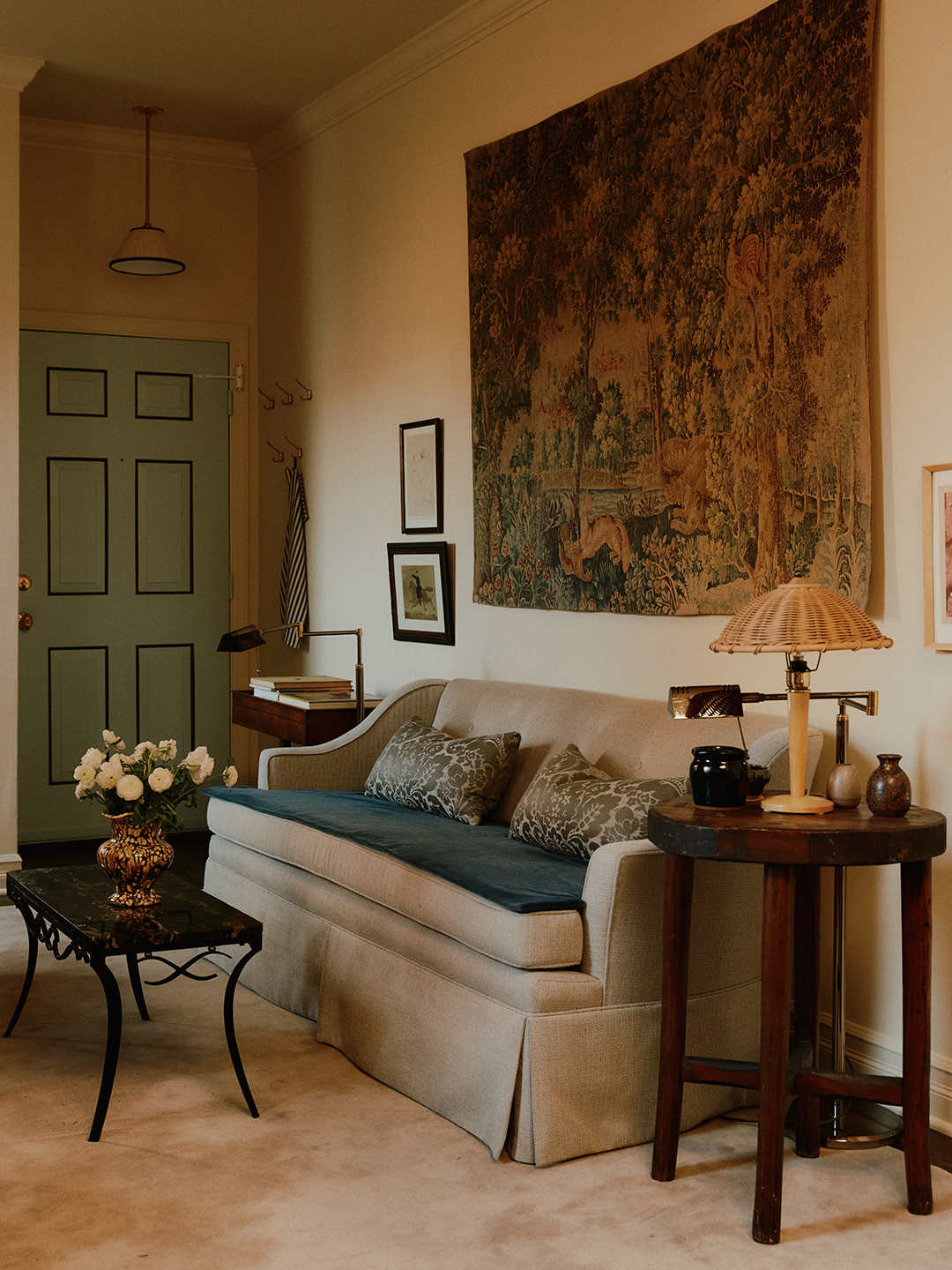 In Caitlin Cavagnolo’s dream world, she and her husband, Tyler Randall, would live in an abandoned Italian villa, where large tapestries cover the walls and the furniture is worn-in but beautifully so. Of course, you don’t have to be in your ideal location to channel those same vibes at home. When Tyler and Caitlin bought their one-bedroom apartment in Jersey City, New Jersey, in 2016, there weren’t soaring cypress trees out front and frescoes on the ceilings. But it did have an in-unit washer and dryer, a basement, and a balcony. Plus, there was plenty of wall space to hang a tapestry of their own. In the greater New York City area, that’s amore.