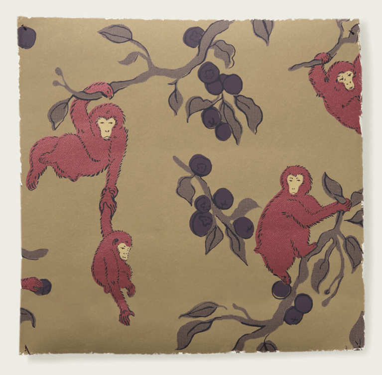 The kitchen started with wallpaper by Zak + Fox. I wanted to use this particular wallpaper with monkeys, as they reminded me of our client, Raushan, who is an active young woman with curly red hair. I was honest with her and said I saw the parallel between her and these monkeys while presenting this wallpaper. She laughed and said that she could see the resemblance, too. The purple fruit in the wallpaper gave us the color for the kitchen cabinets.