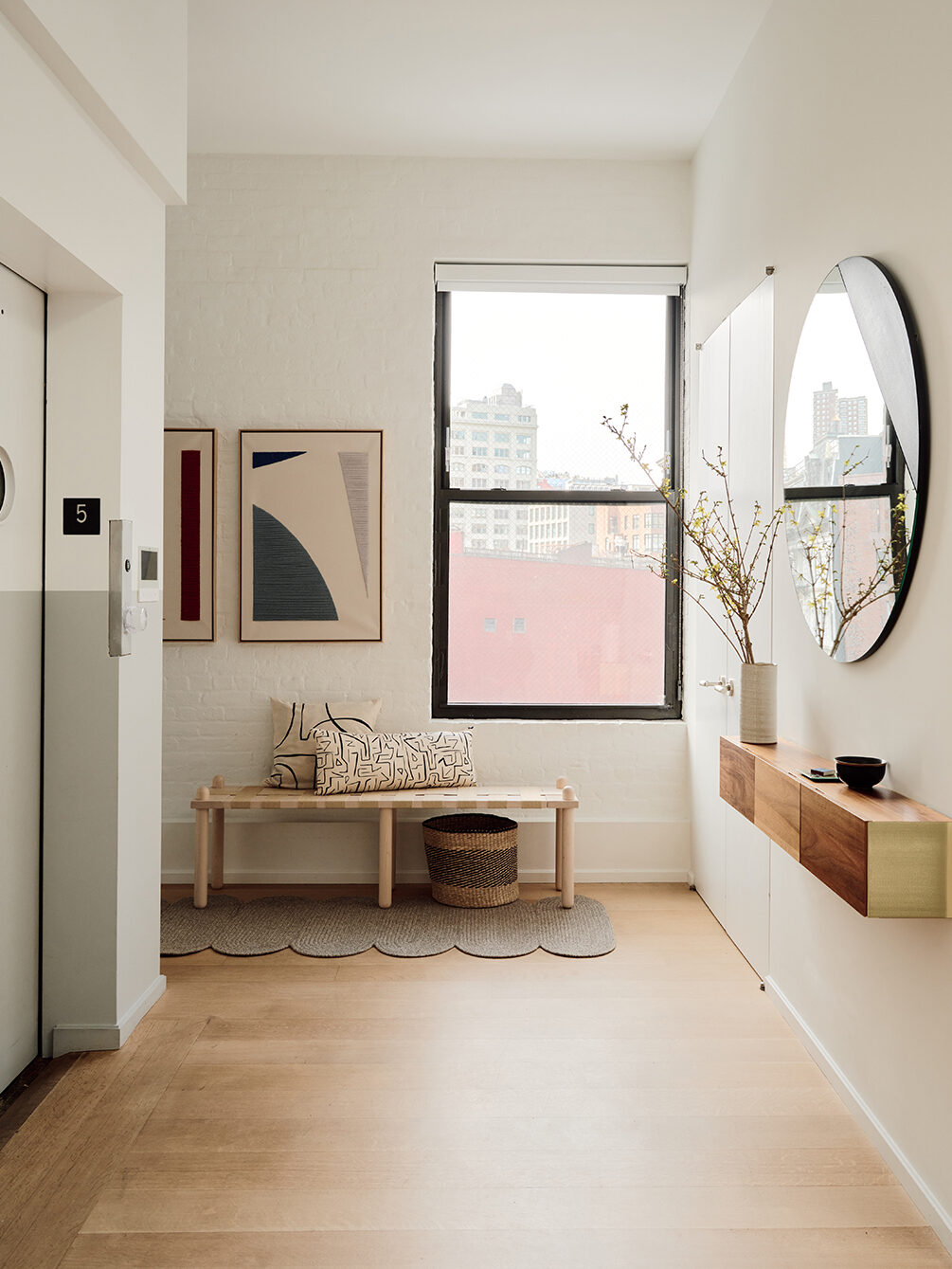 The Shanahans’ contractor, Jakub “Kuba” Bednar of Bednarz Construction, introduced the couple to architect and designer Yaiza Armbruster, founder of Atelier Armbruster, and together they worked on bringing the apartment up to speed speedily. At the time construction began, Devin was pregnant with the couple’s first son, Lionel, now 4. They took the space down to the studs, added a new subfloor, and installed skylights that had to be craned onto the roof because they wouldn’t fit in the elevator. Once it was livable enough to have a newborn around, Mike and Devin moved in. “It was still kind of crazy, but living in the space gave them a good idea of where the light comes in and where they want to hang out,” says Armbruster.
