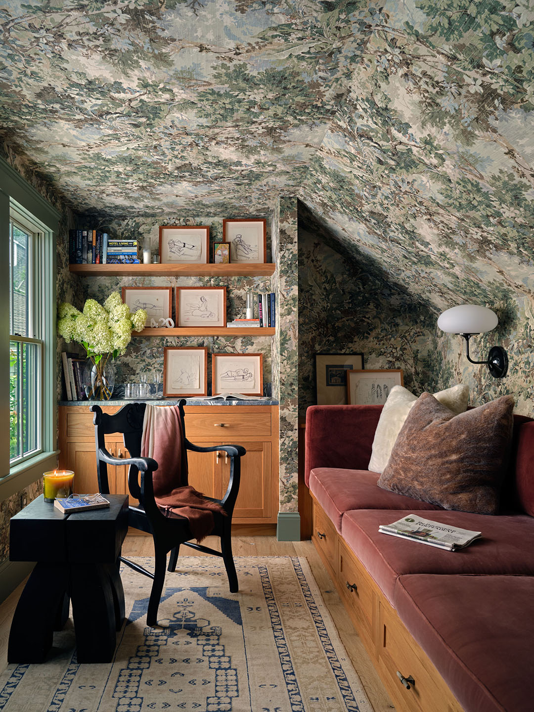 Ryan Stanton of Boston’s Stanton Schwartz Design Group and his partner used the tight 720-square-foot footprint of their Provincetown home as an excuse to pile on colors and patterns in one well-considered palette. You could translate the shade of Adventurer into your sofa’s upholstery, as they did, and then pair it with wallpaper to match. How British!