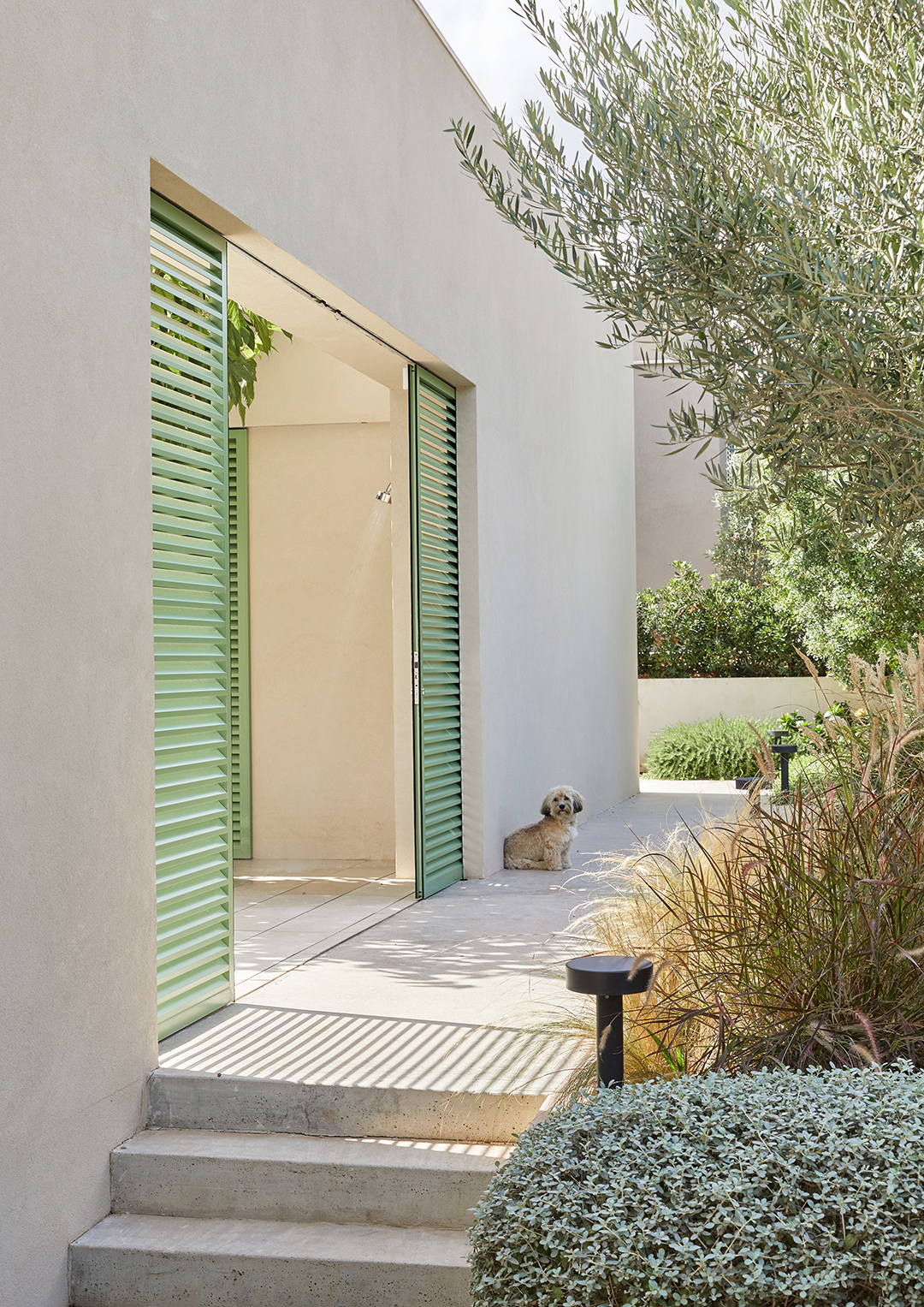 “The idea was to create frames for the [surrounding] gardens and the ocean,” Mulet says. The home is modular, in a way, where the doors can be opened and closed at different points, changing the whole look and feel of the space. “You can have different views depending on the season,” he adds.