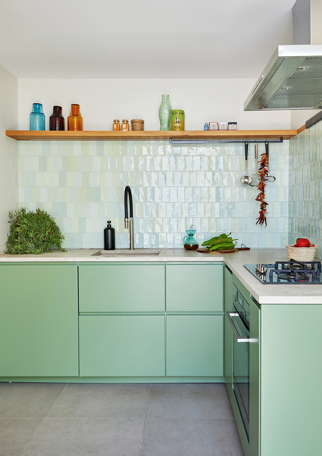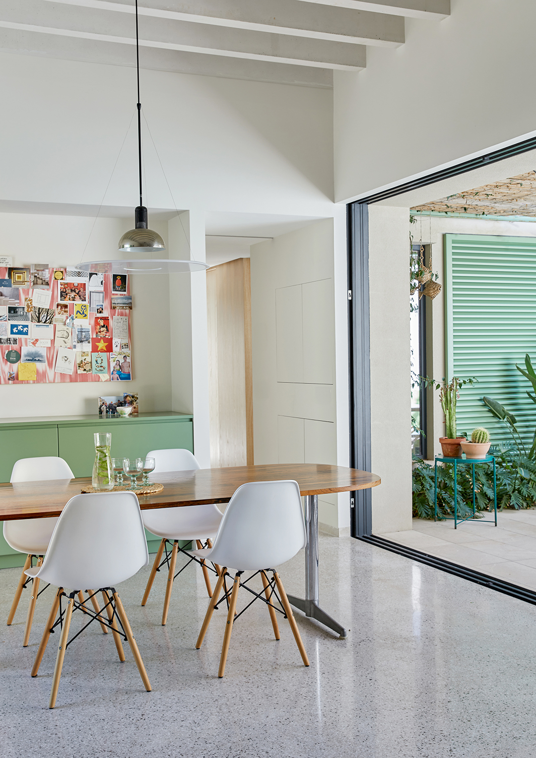 In the winter, the patio acts as an infrequent outdoor space because the sun only warms certain areas. But in the summer, the mint shutters stay open, and it becomes like a second living room where the pair entertains friends with long lunches, day drinking, and dinners that begin between 9:30 and 11 p.m., as is the Spanish way. That is, after all the surfing.