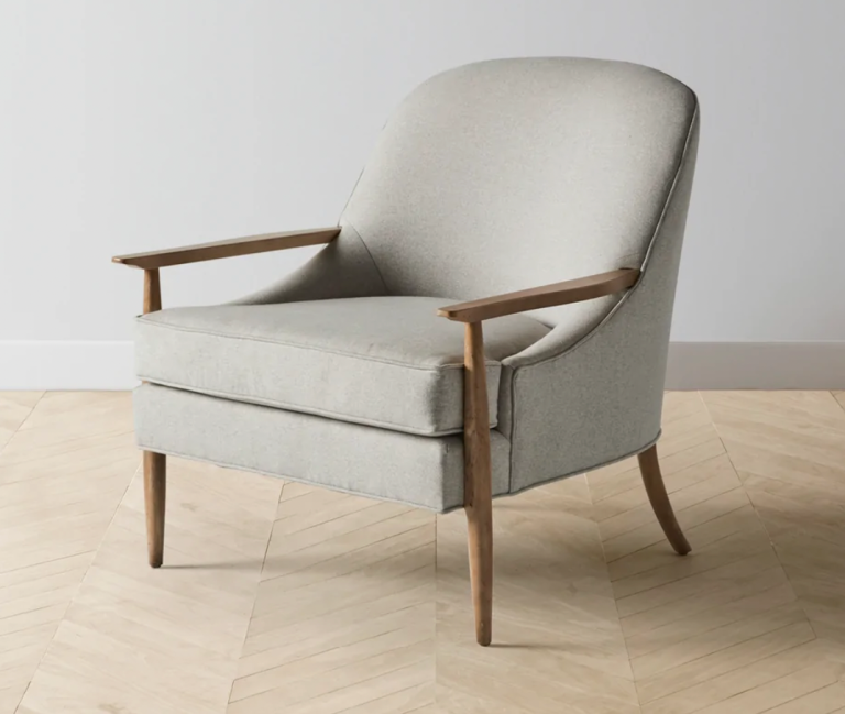 As far as furniture went, everything needed to be “easy to clean, hard to destroy, and generally void of sharp edges,” says Lauren. Sinclair delivered on the baby-safe, pup-proof brief with accents that were low on maintenance but high on style, such as an 1980s Danish-style lamp placed beside the bouclé sofa and a pair of sheepskin poufs that conjure strong hygge energy in the winter. To keep the floors natural, she introduced an off-white deep-pile rug of her own design in the living room, which is so fluffy to walk on that it doubles as a cushy play mat for the couple’s toddler, Julian. Equally, the room’s tour de force, a vintage brass chandelier made in Italy, remains far out of reach of little fingers.