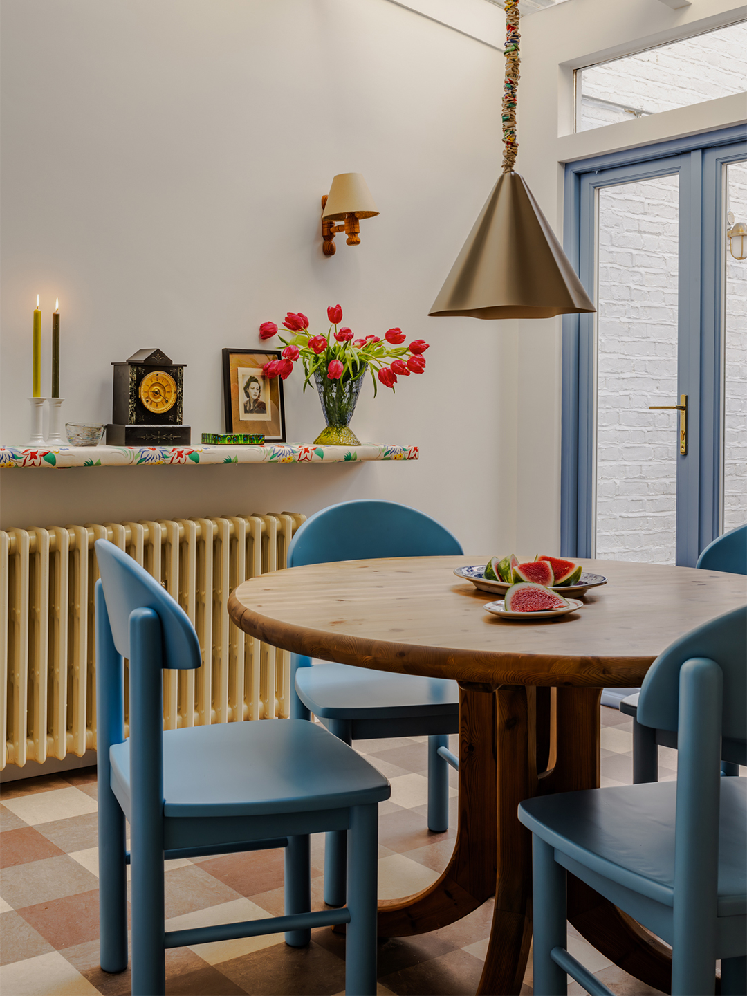 Actually, they just needed someone who really understands a good room layout. Rowell has that covered. As is often the case with narrow houses like this, there is never a spot dedicated to stashing coats and shoes. The designer addressed this by cleverly flipping the usual arrangement of the double living-room. Instead, she put a custom TV unit in the nook by the window and created a new central door so that when you walk in, you can head either left to the sofa, or right to the kitchen. But best of all, she kept the old door in the hallway which now opens to a storage cupboard. Ahead, in her own words she explains how clever spatial workarounds made the owners’ vision a reality.