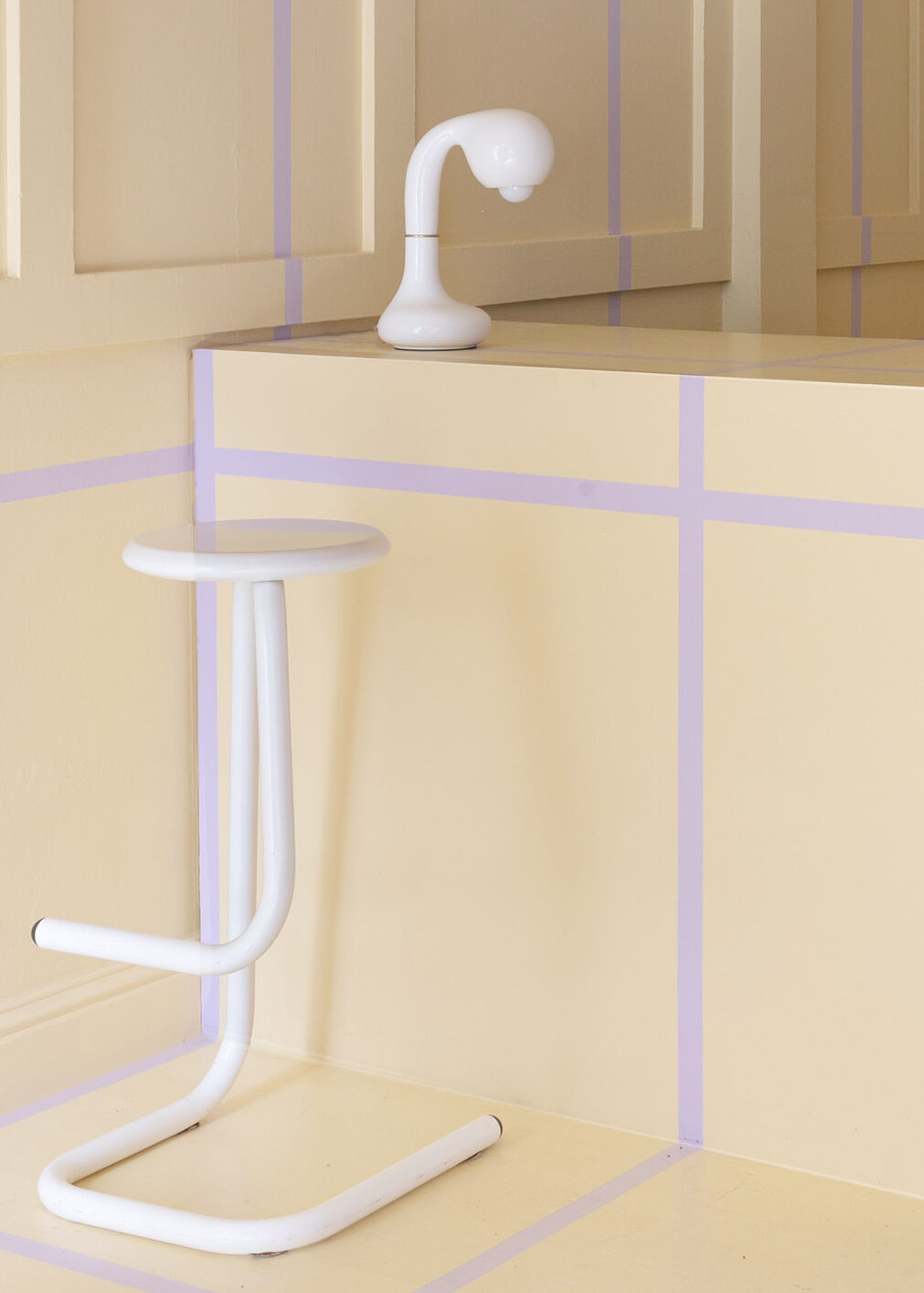When it came to conceptualizing the whimsical design, Tafoya turned to local interior prop stylist Rosy Fridman, who knew right away that the tiny 350-square-foot space would lend itself to an experiential approach. “It’s so fun to create an experience in a small space because it doesn’t get as diluted as it would in a large space,” notes Fridman. After toying around with the grid layout in SketchUp, she realized bigger is better in this case: They landed on repeating 2-by-2½-foot squares for the pattern. “When I saw what Rosy was proposing, it was far outside what I had originally been thinking, but that’s what I loved about it,” recalls Tafoya.