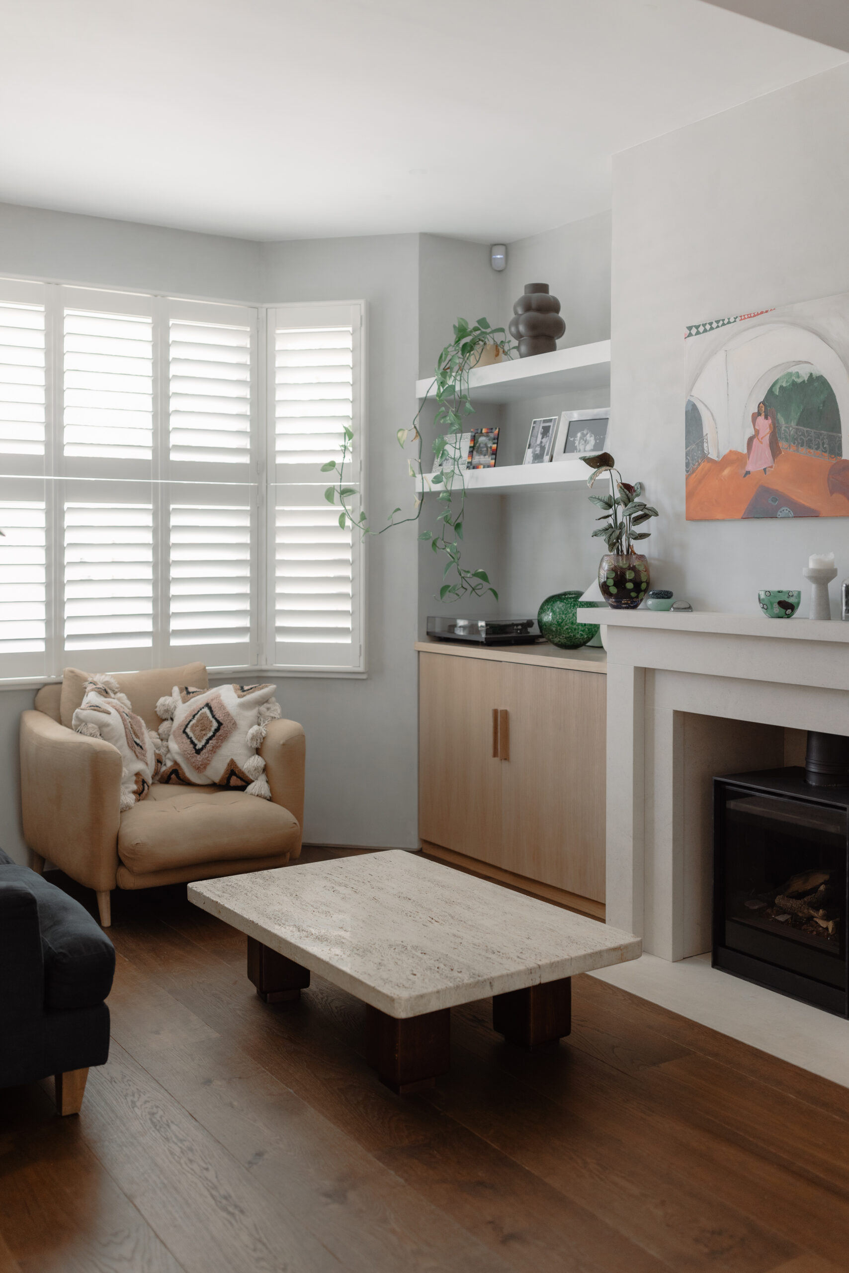 Owing to the permit process, the fine-tuning of plans, and the major delays caused by the pandemic, the houses took four years to take shape. But the benefit of starting from scratch was being able to incorporate small but impactful details. “I have a sliding door that goes into the wall to compartmentalize the kitchen area from the living room, so it’s not an open plan when I don’t want it to be,” says Christie. In Rosanna’s house, she waved farewell to the days of storing suitcases under her bed by going big on built-in cabinetry. The sisters also requested cat flaps, despite not having pets (yet). “We grew up with cats,” says Christie.