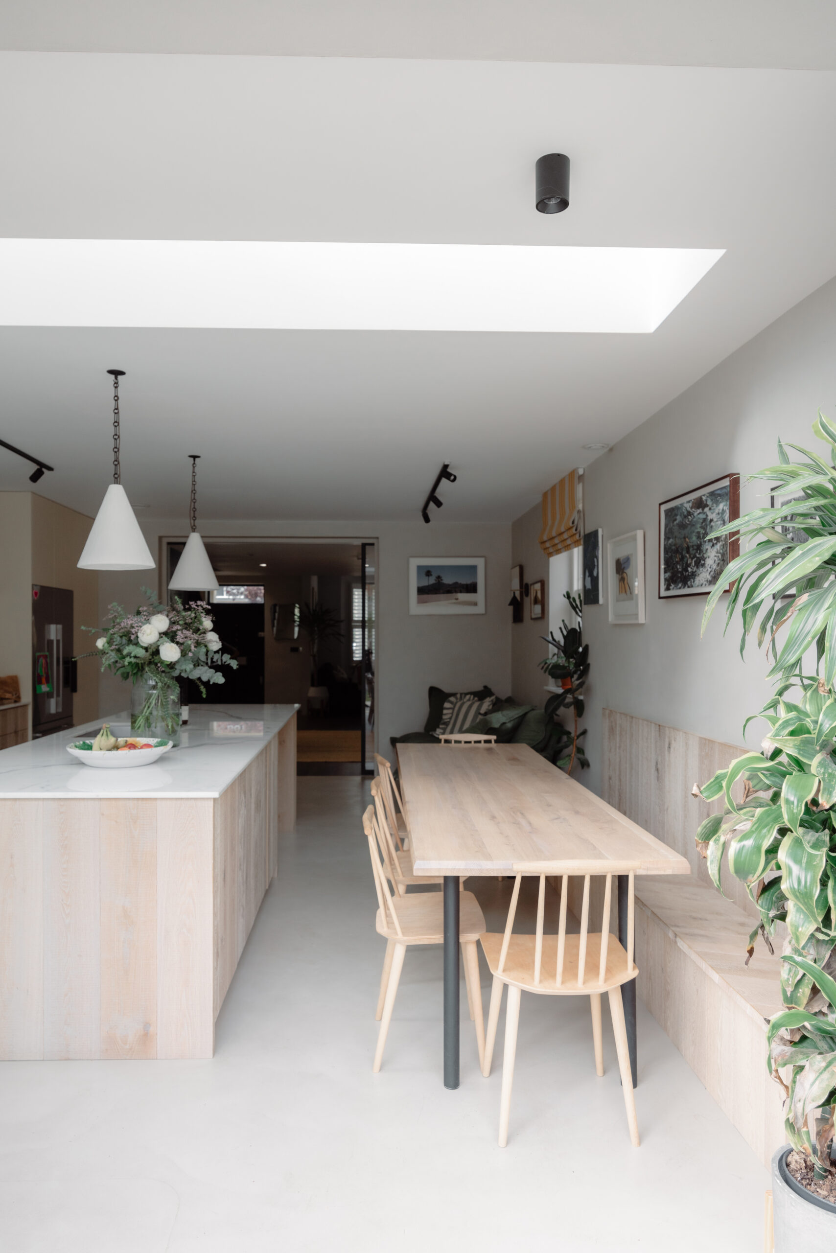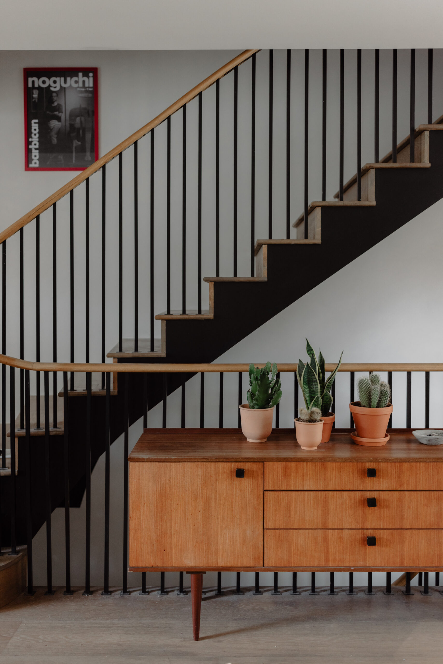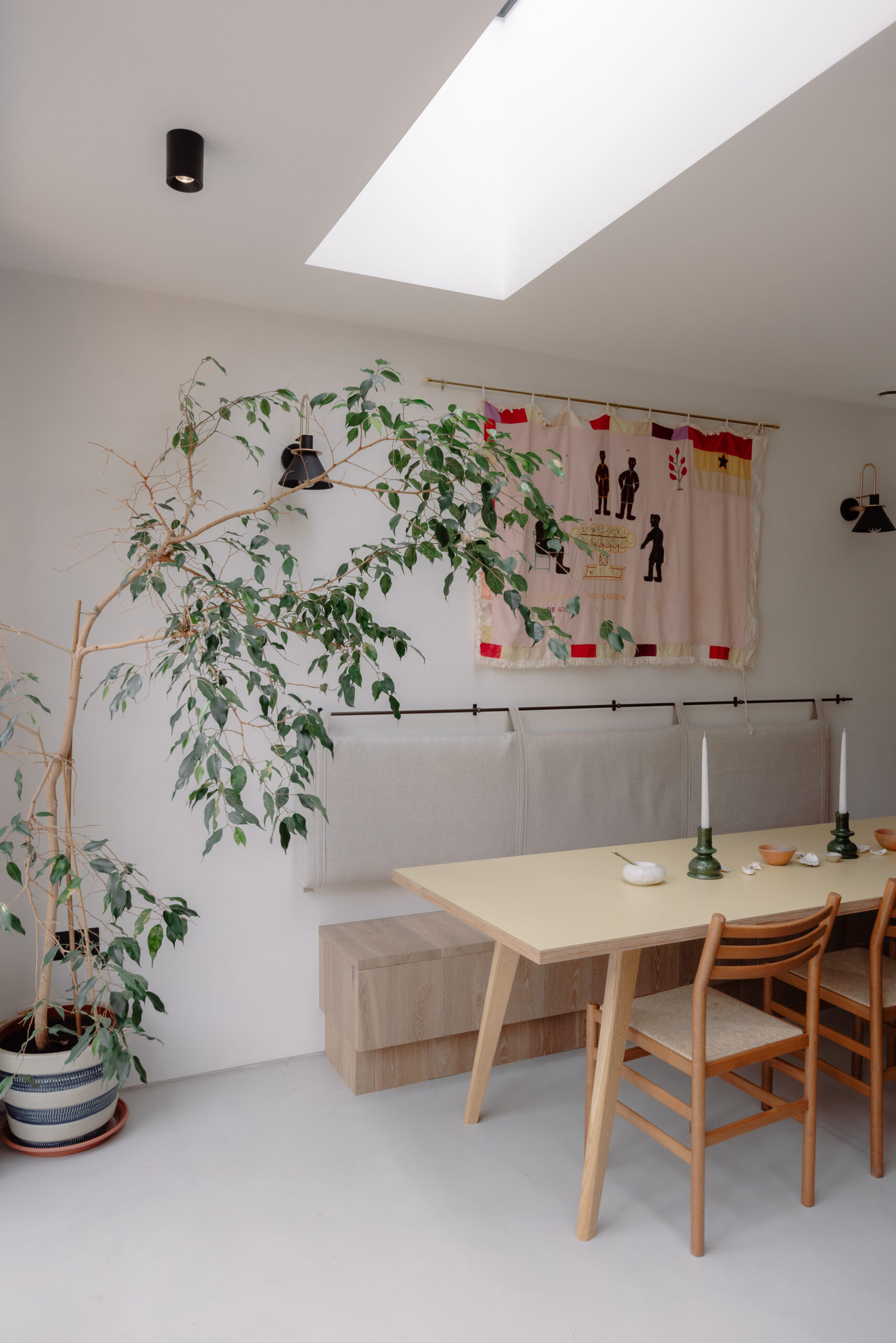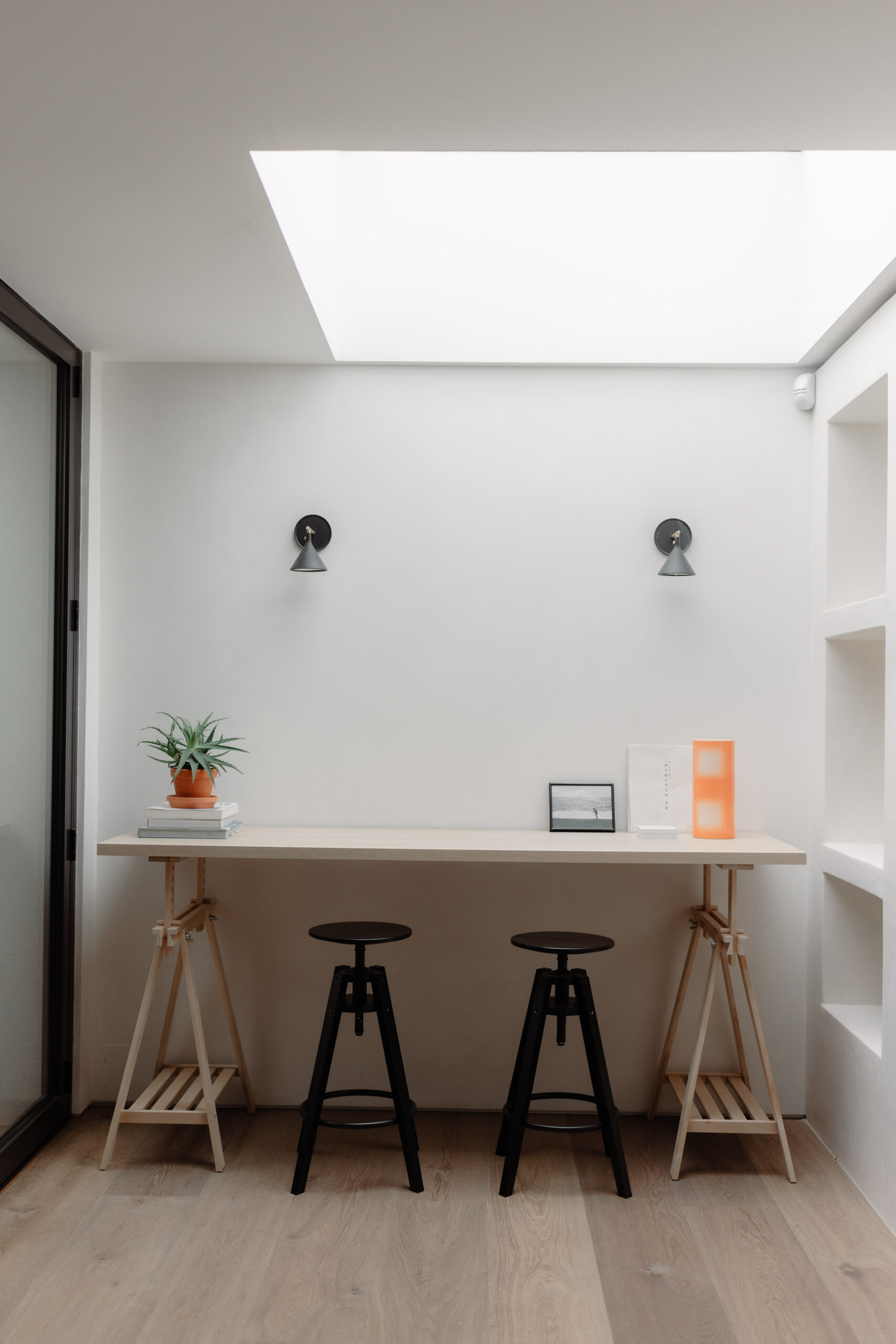 It has been 18 months since the Wollenbergs moved in, and the neighborly dynamic has proved harmonious so far. “It makes life easier. We work with Australia and can do an 8 a.m. Zoom call together over coffee at my kitchen table. And we can hang out as a family more easily,” shares Rosanna. Their early-morning commute to the Otiumberg office in Southwark, however, remains a solitary affair: “I like to be mute for half an hour!” confesses Christie.