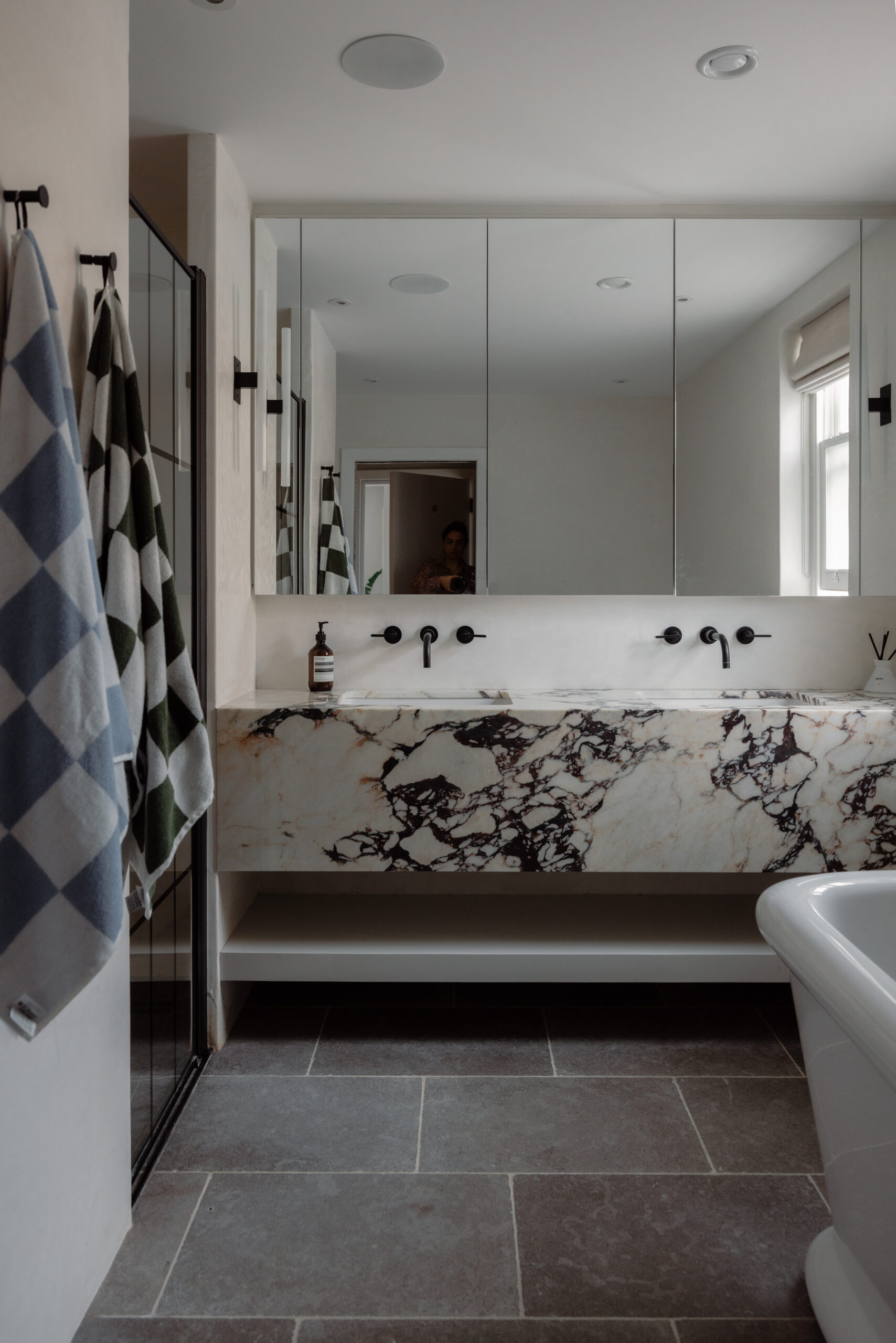 Meanwhile, Rosanna’s style skews more Scandinavian, with limewash from Bauwerk adorning the walls. The pandemic put a stop to joint shopping trips, but the sisters exchanged references throughout, and their shared desire for tadelakt in the bathroom meant negotiating better rates by sharing the same suppliers. “The kitchens look different, but they are made by the same company, so we got a better deal,” says Rosanna.