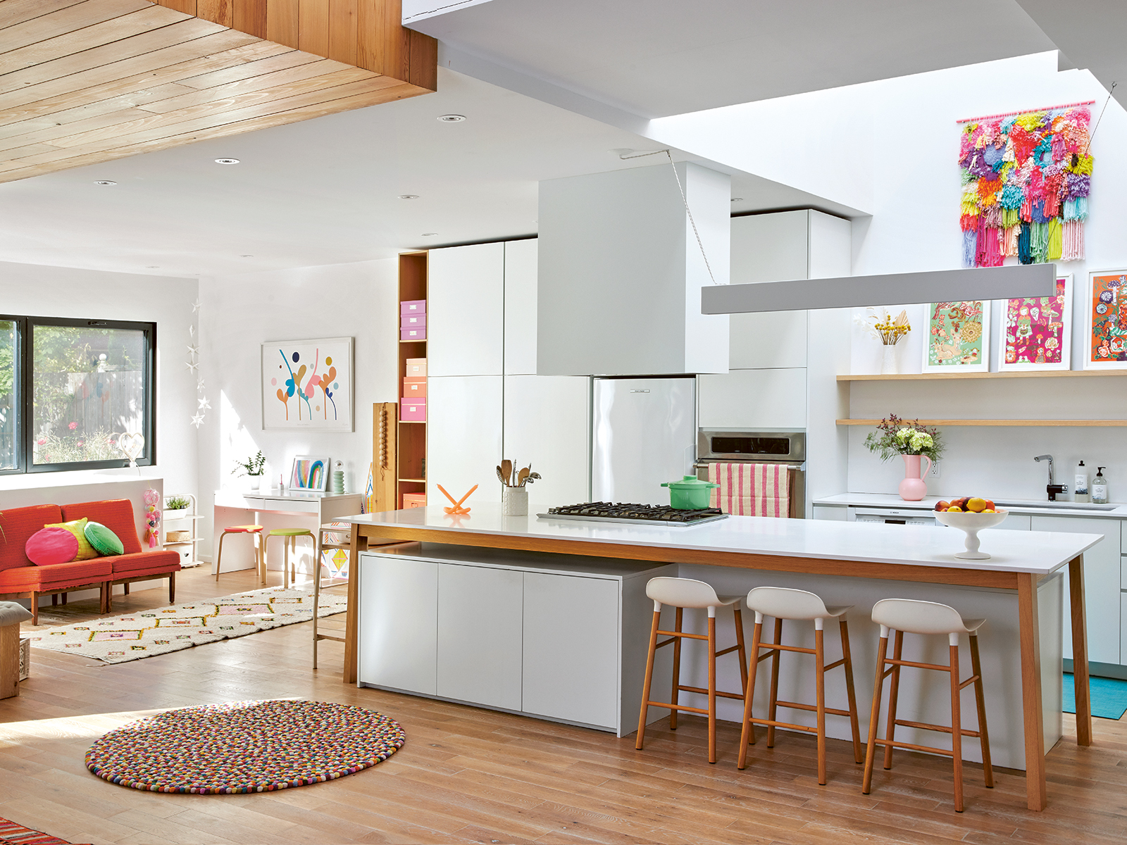 Warning: Entering Tinka’s home for the first time may prompt squeals of delight. The colorful and spacious house is a feast for the eyes, with modern architecture, high ceilings, and things to explore and revel in. She jokes that she’s a bit of a maximalist, a collector who loves to surround herself with art, books, textiles, ceramics, and vintage treasures.