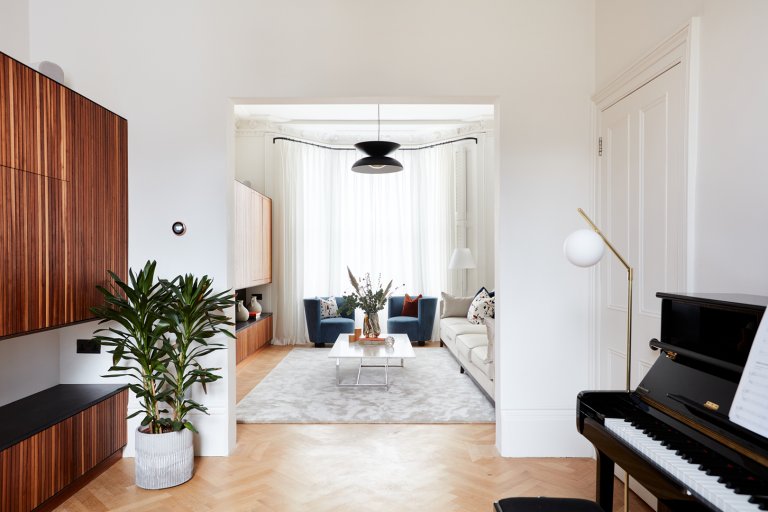 You hear about twins having telepathic abilities, and in the case of Orlagh and Gemma McCloskey, it’s certainly true—at least as far as decorating goes. “Even if there’s something I wouldn’t necessarily want in my house, I might pick it up and just know that’s Orlagh,” says Gemma, the founder of architecture and interiors firm Cúpla Studio. They’re so in sync with each other’s tastes that when the sisters got engaged around the same time, it only made sense for them to have a double wedding. “That was the best day,” recalls Gemma. Given their special connection, there was no question who Orlagh, the cofounder and design director of fashion brand Rixo, would hire to design her London home.
